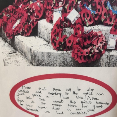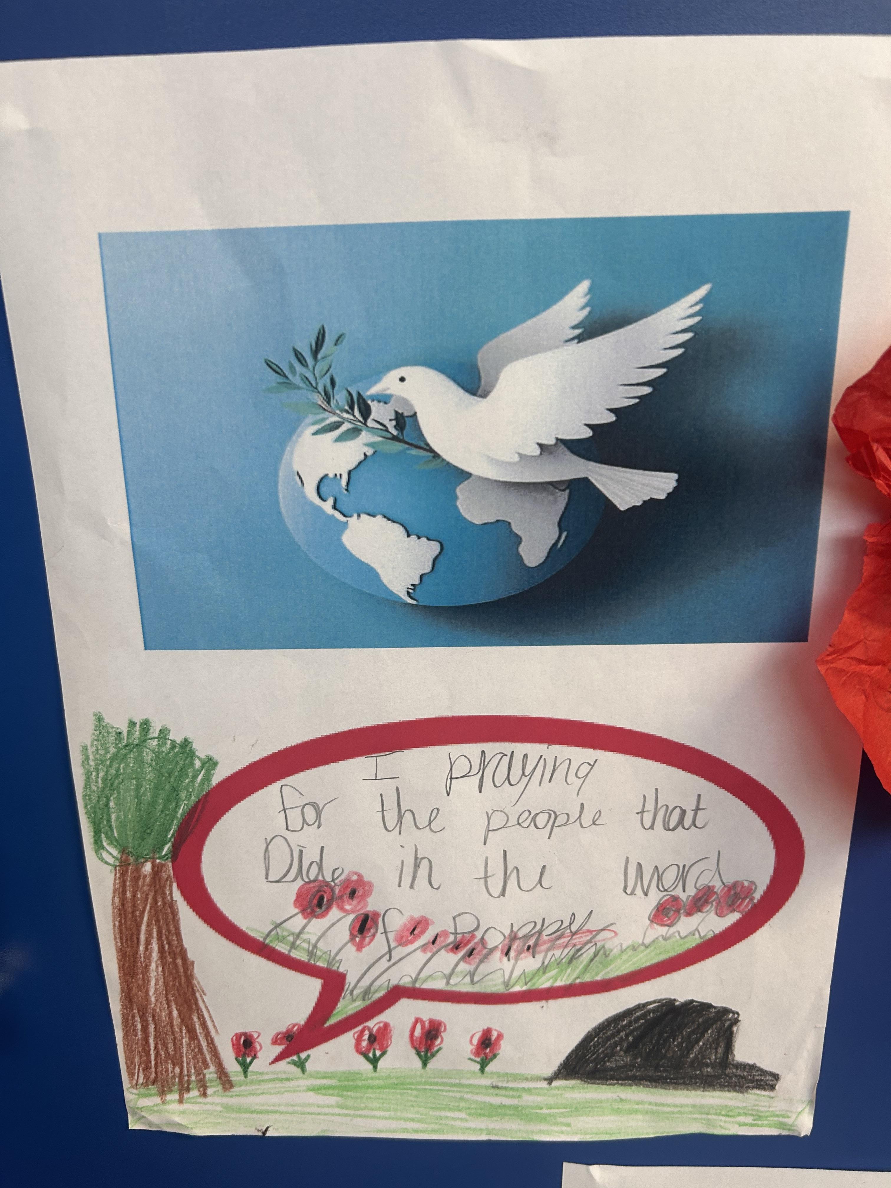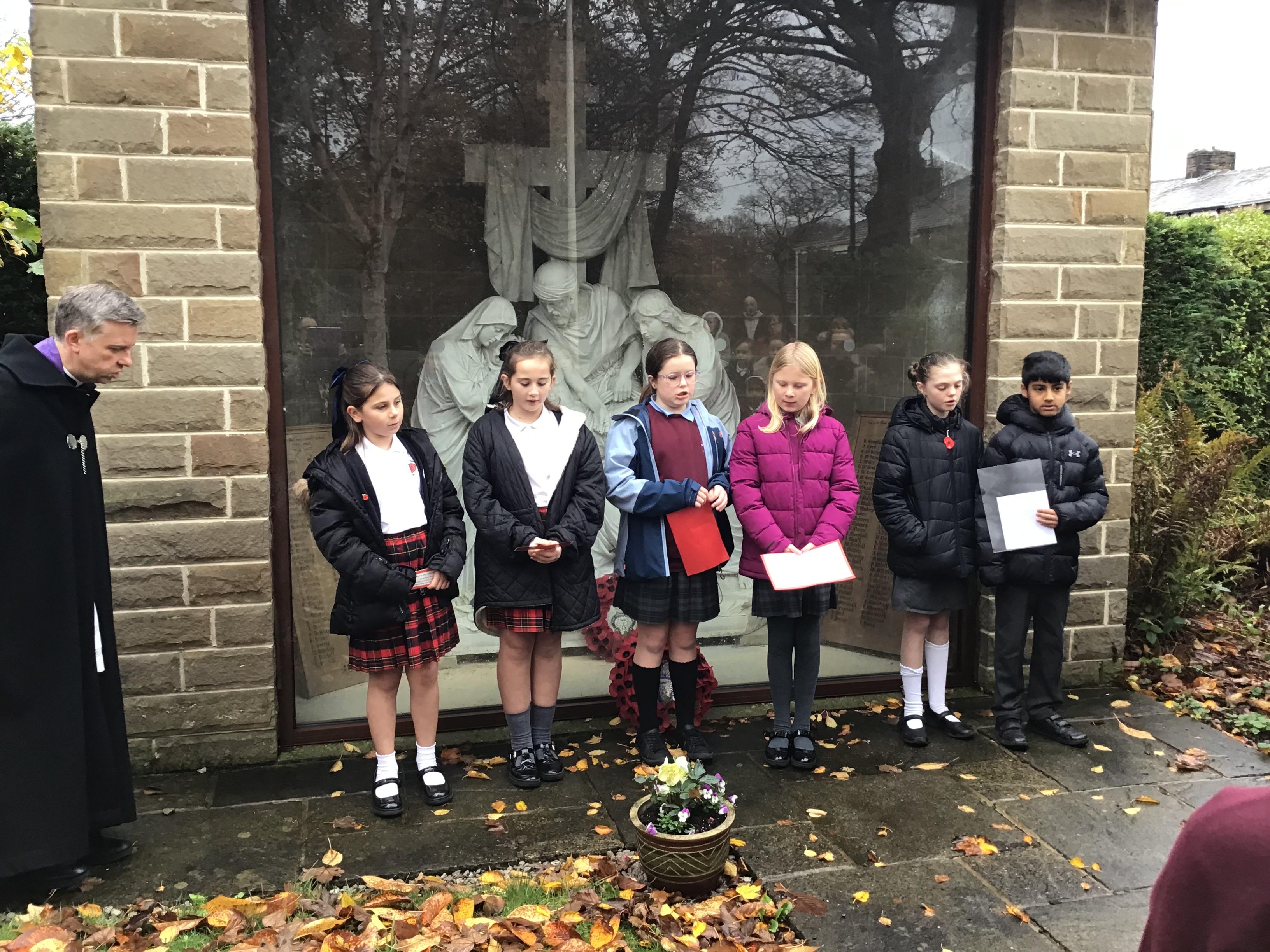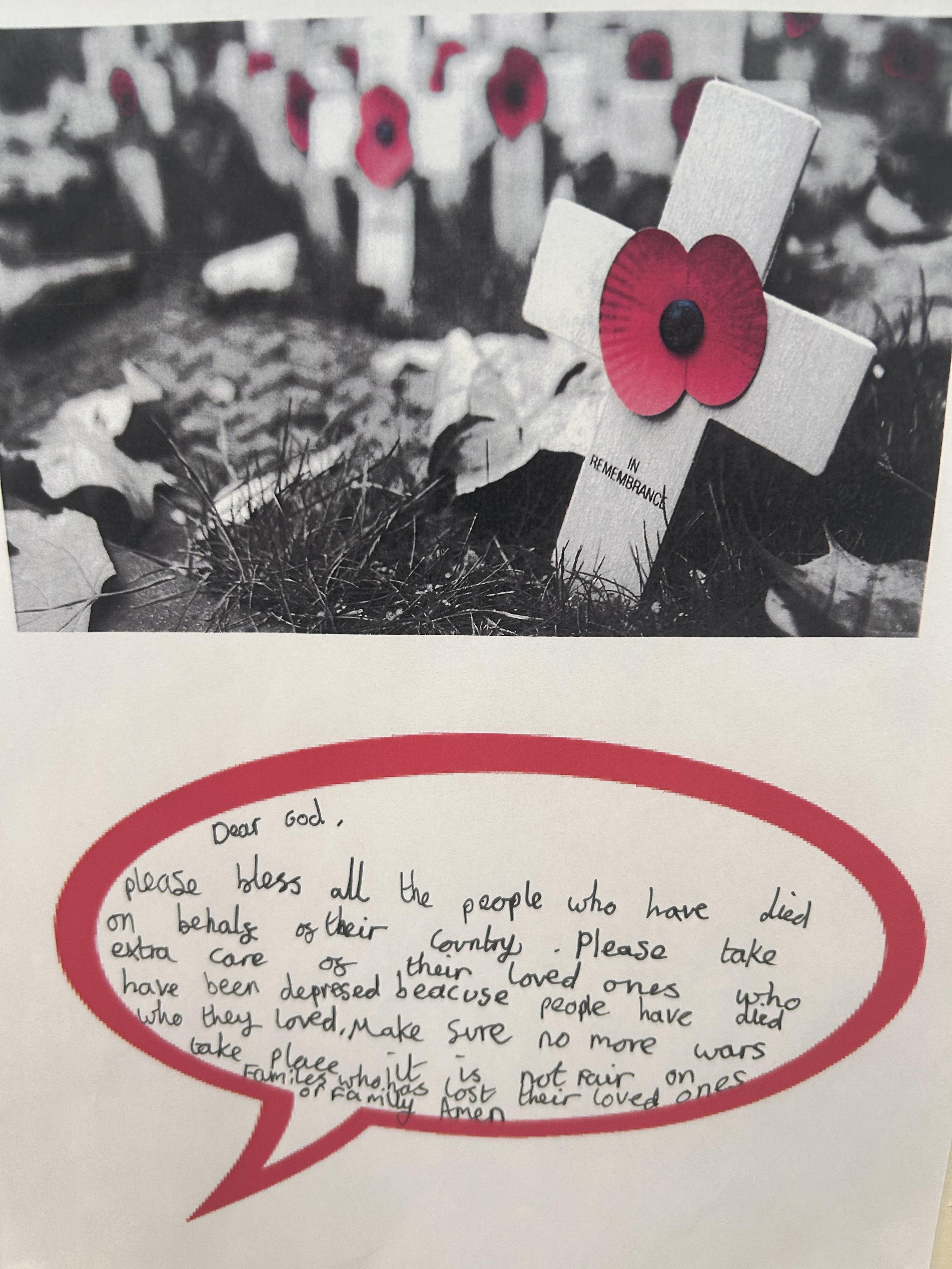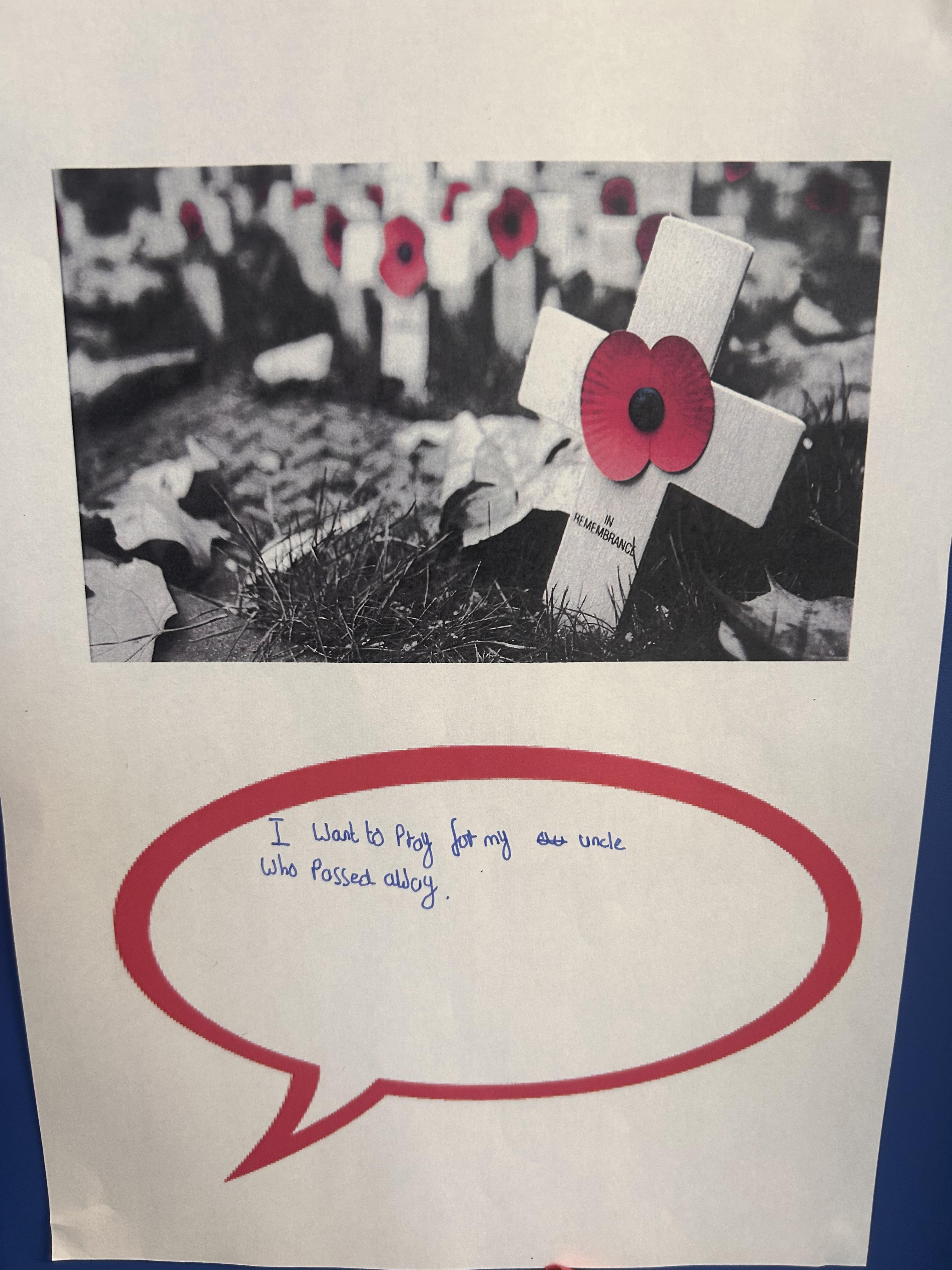 On Tuesday 11th November, our pupil GIFT Team attended a service in the Church grounds with Mrs Wolfenden and led by Father O'Brien. The pupils read psalms and bidding prayers. Pupils reflected in silence over the memorial. In school we held a 2 minute silence at 11am. Pupils in classes have been focusing on remembrance and have written some beautiful remembrance reflections.