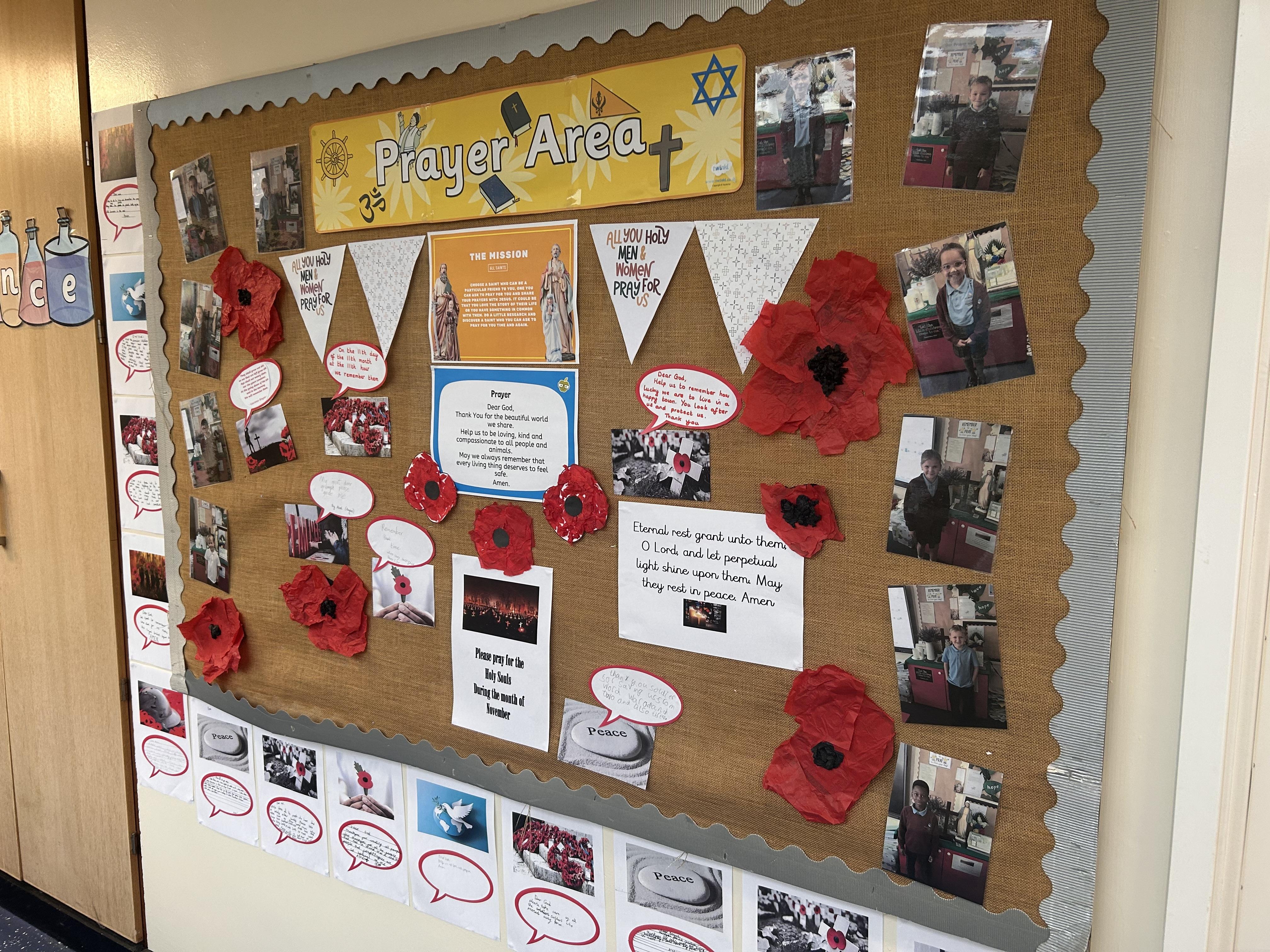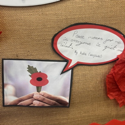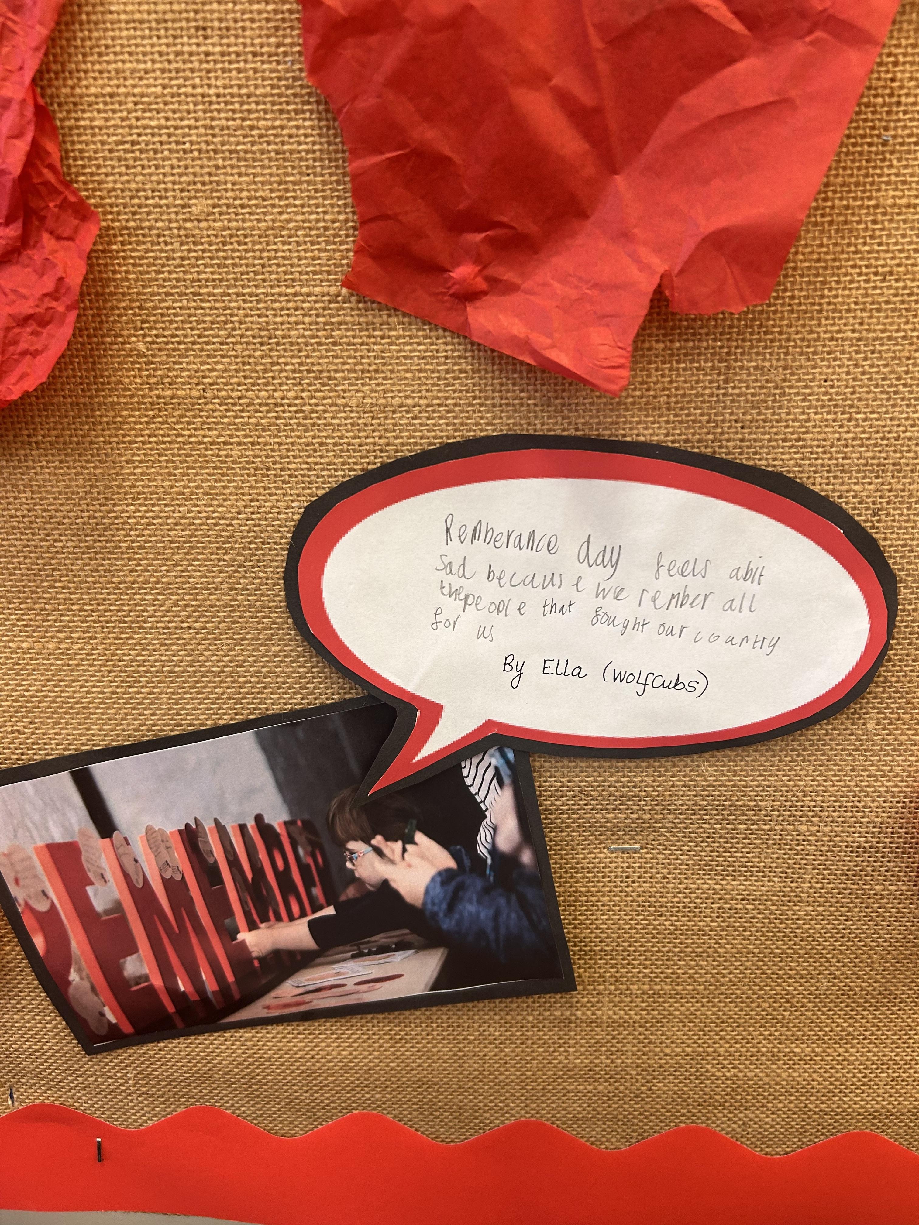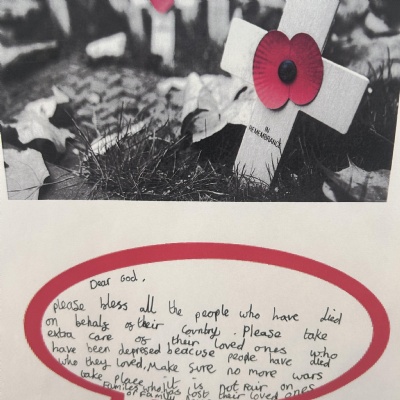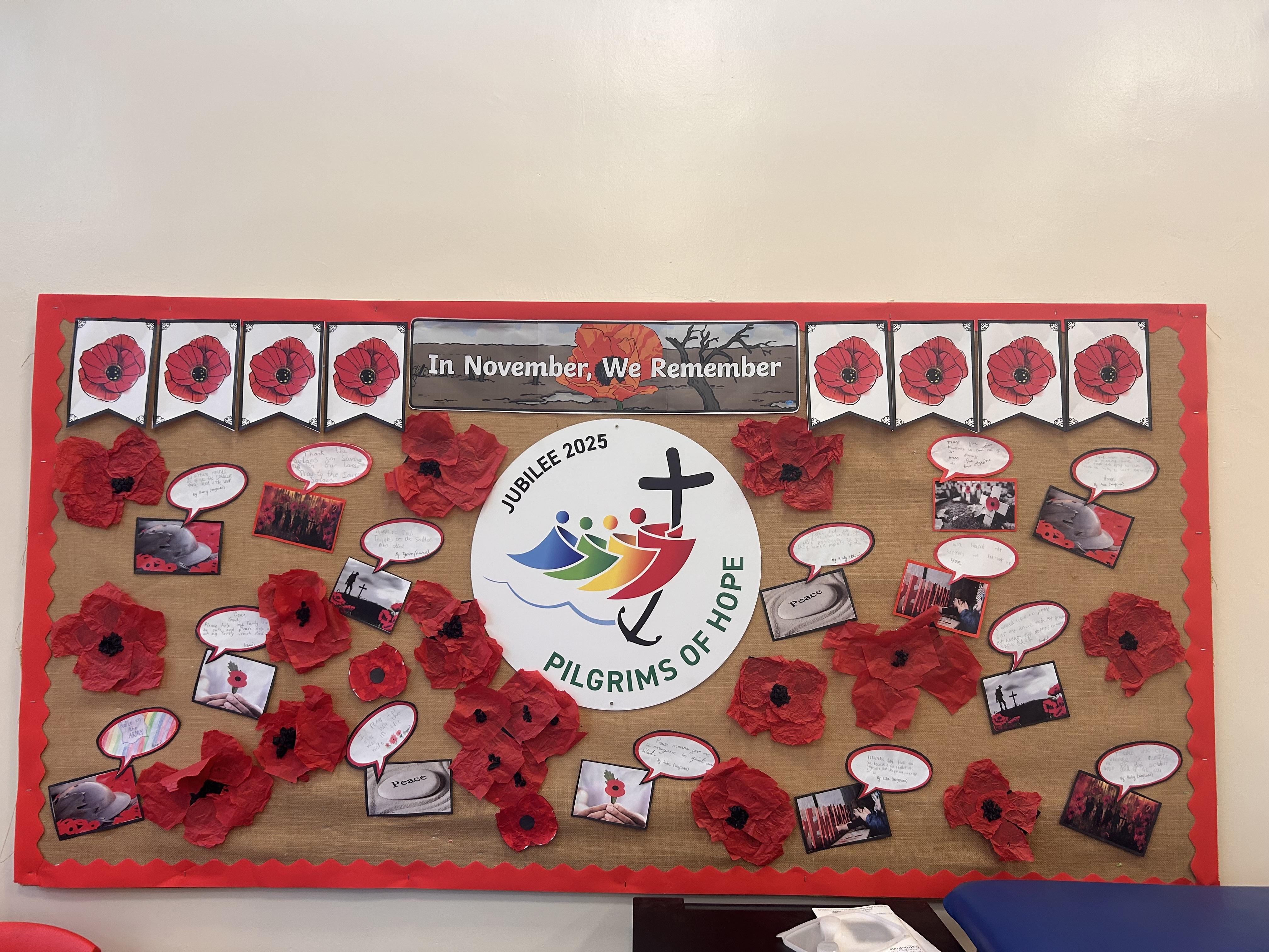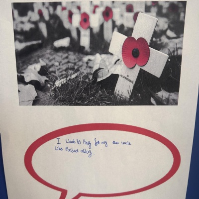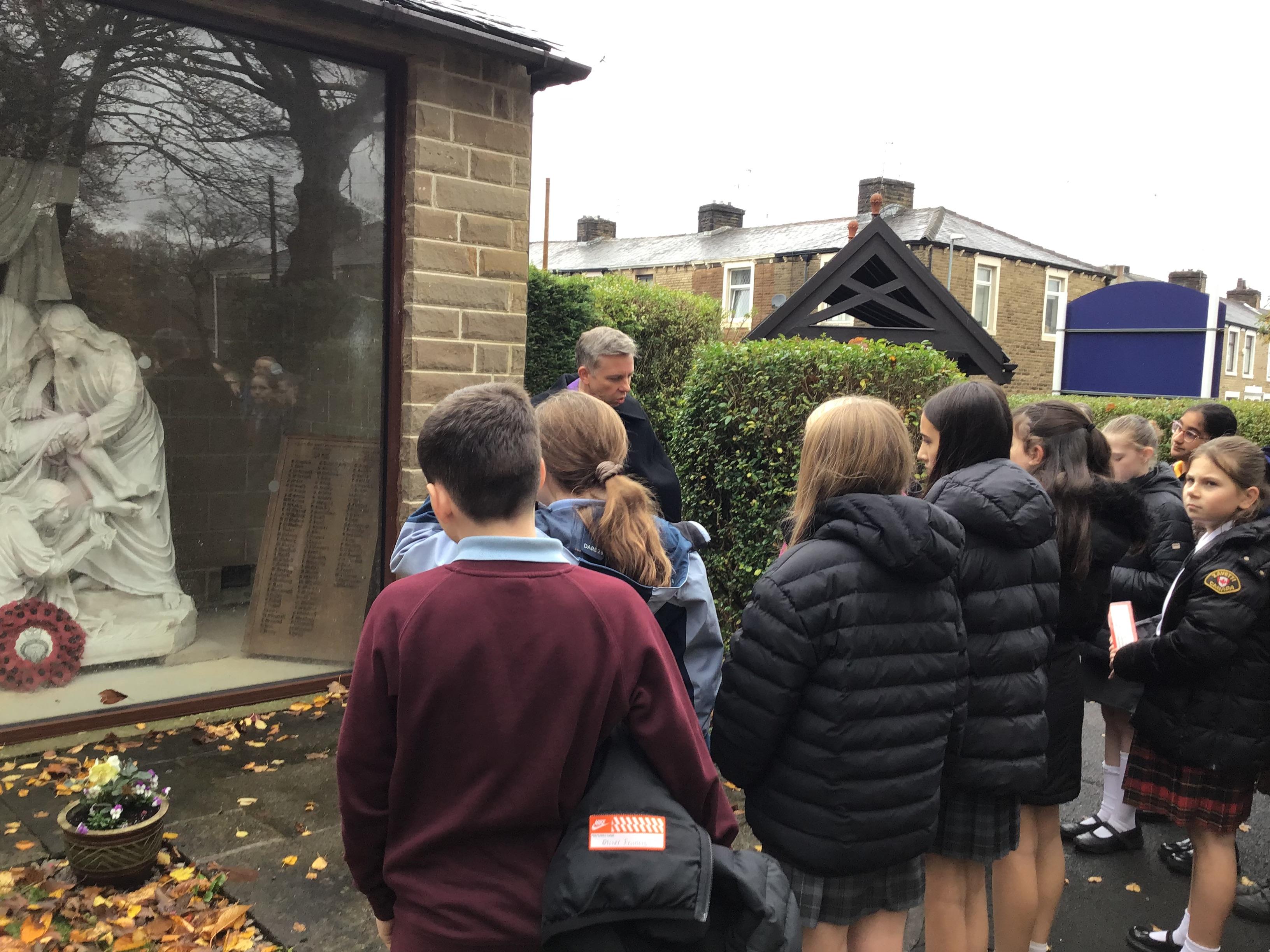 On Tuesday 11th November, our pupil GIFT Team attended a service in the Church grounds with Mrs Wolfenden and led by Father O'Brien. The pupils read psalms and bidding prayers. Pupils reflected in silence over the memorial. In school we held a 2 minute silence at 11am. Pupils in classes have been focusing on remembrance and have written some beautiful remembrance reflections.