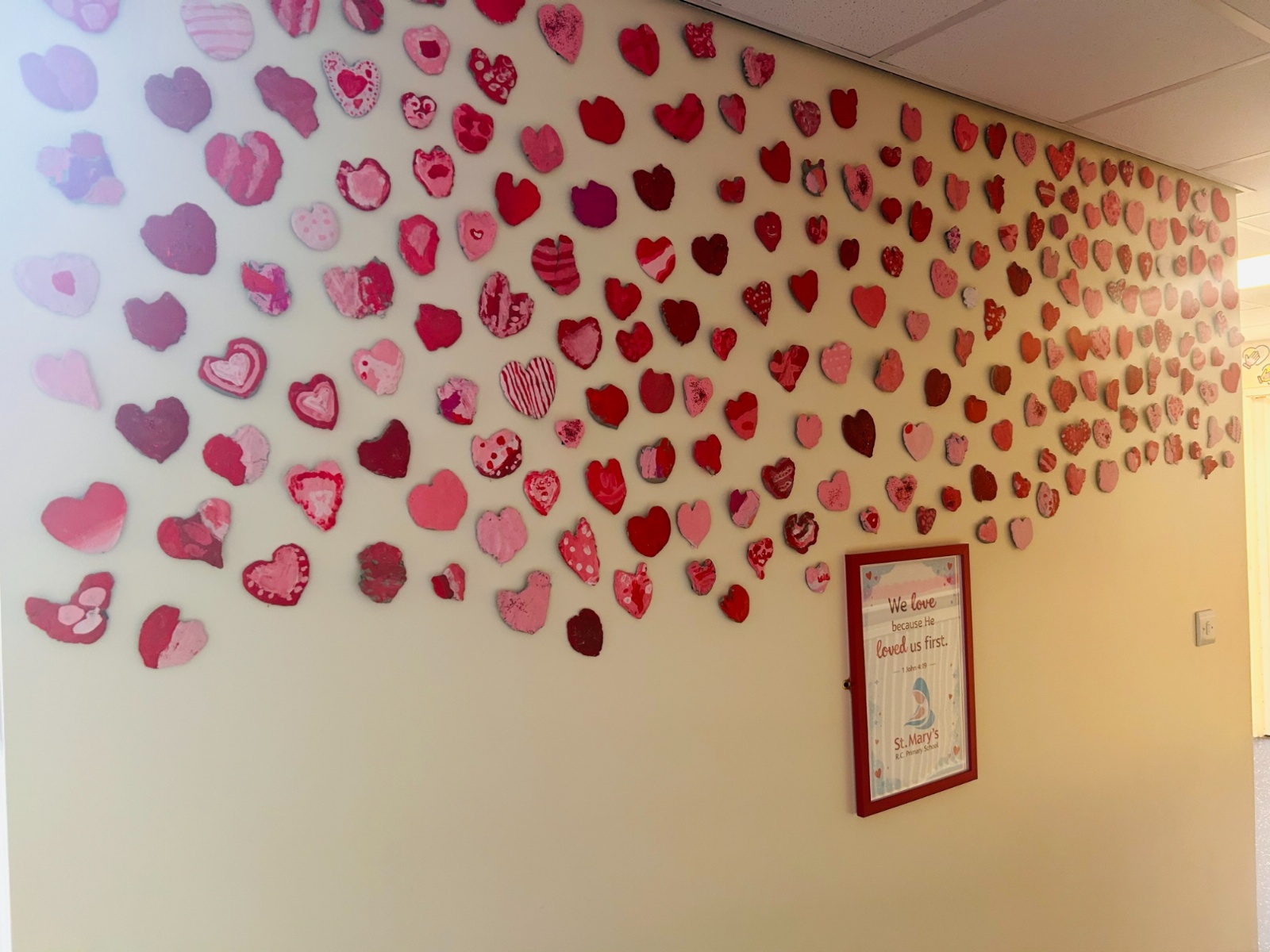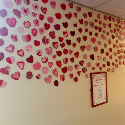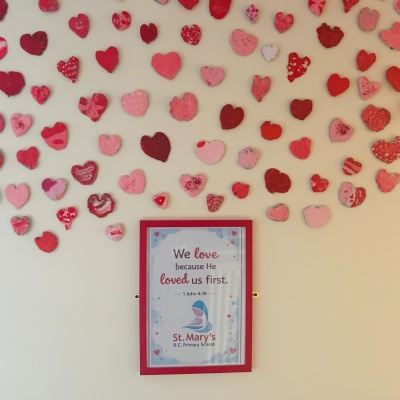 On Monday 9th February every child in school took part in a clay heart workshop. As Valentine’s Day was approaching our thoughts turned to love and who loves us. All pupils talked about how they were loved by God which was heart warming to hear. We discussed who we love and what it feels like to be loved. We are creating a new display in school around love and the bible quote from 1 John 4:19 “We love because he loved us first” and wanted all pupils to be a part of it. Pupils all made their own clay heart, shaped by themselves, each one different like themselves. Children painted their hearts in shades of red and pink and they were all added to the display. They look wonderful!