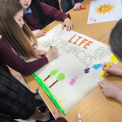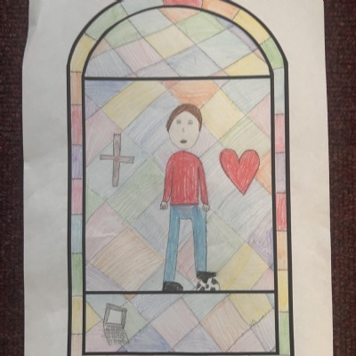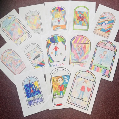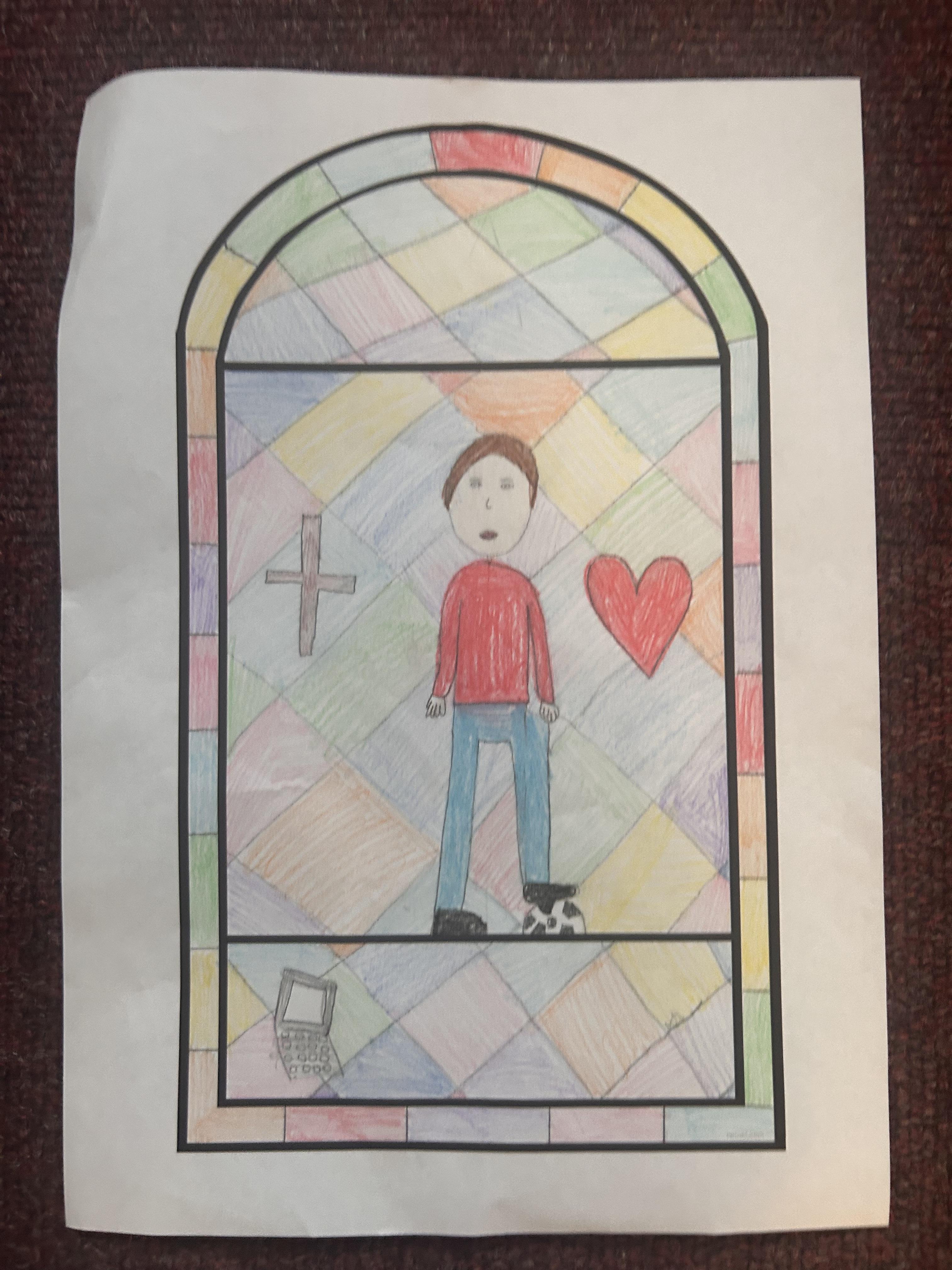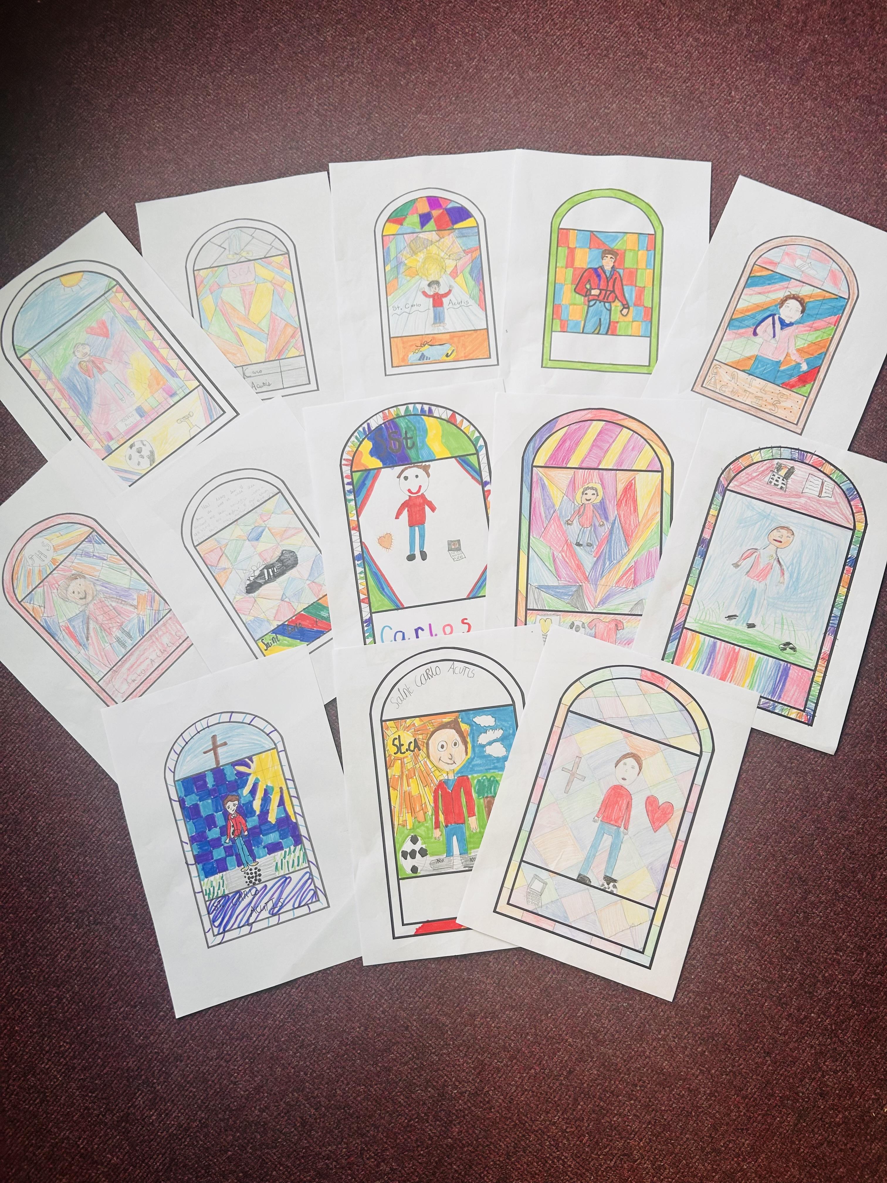 We also held a whole school competition to design a stained glass window with St Carlo Acutis or things he had done.