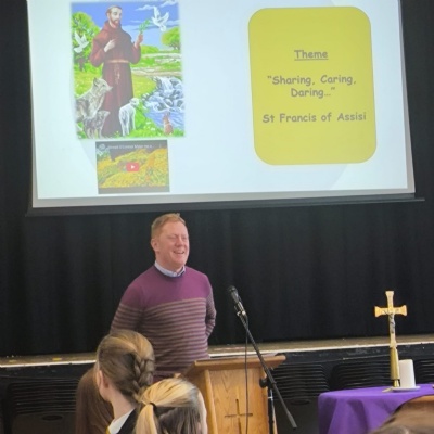 Back at school, all pupils wore trainers to celebrate St Carlo Acutis. Classes also took part in a special Celebration of the Word and wrote special prayers which are displayed in the hall.