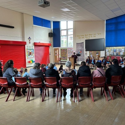 On Thursday 9th October our pupil GIFT Team led a family worship. Family members were invited to share the worship with their children. The worship was planned on the rosary and pupils explained the importance of this to us as Catholics. The worship was very well attended and the PowerPoint made by the pupils was shared with the whole school community so this could be shared at home together for those who couldn’t attend.