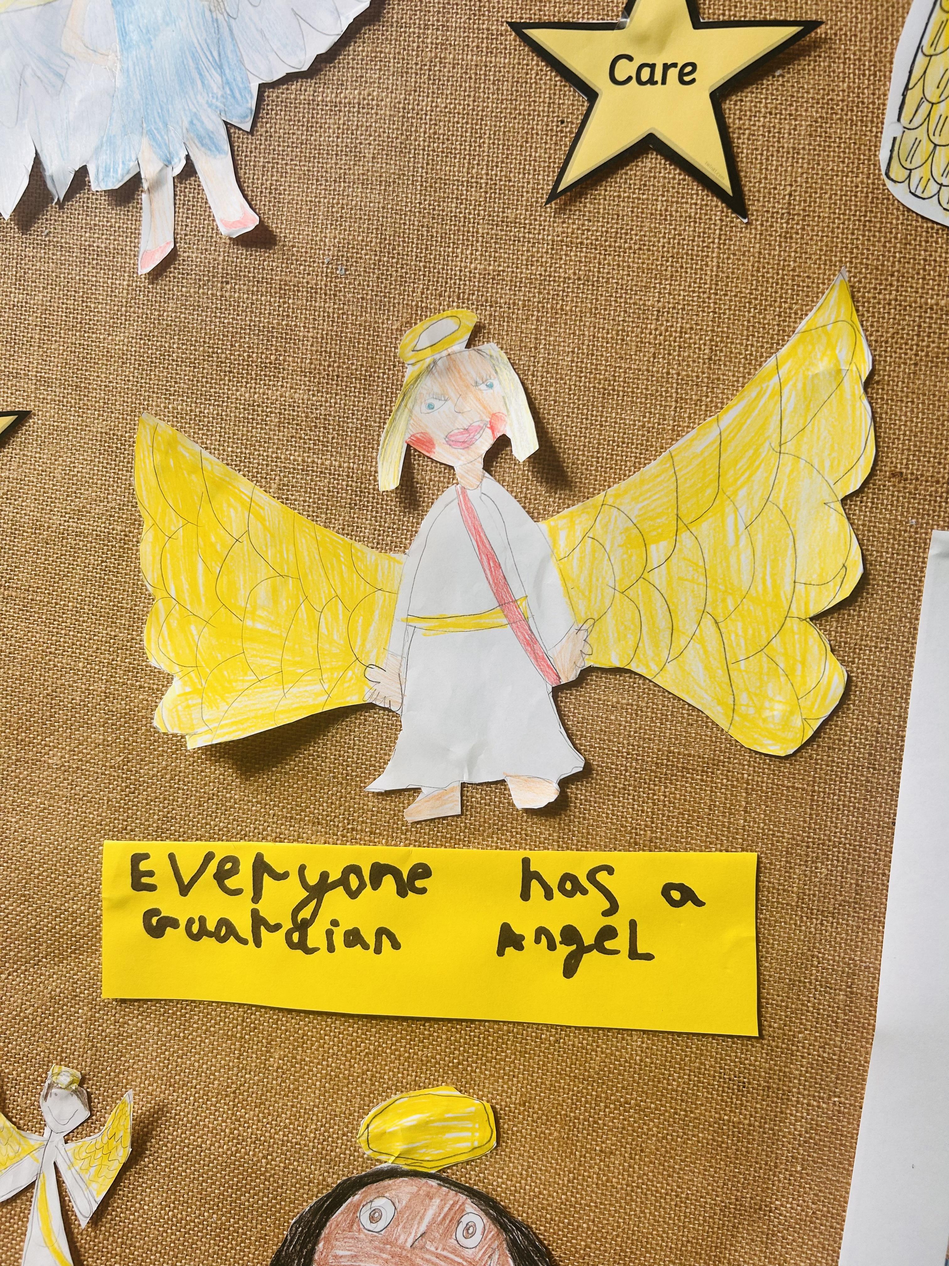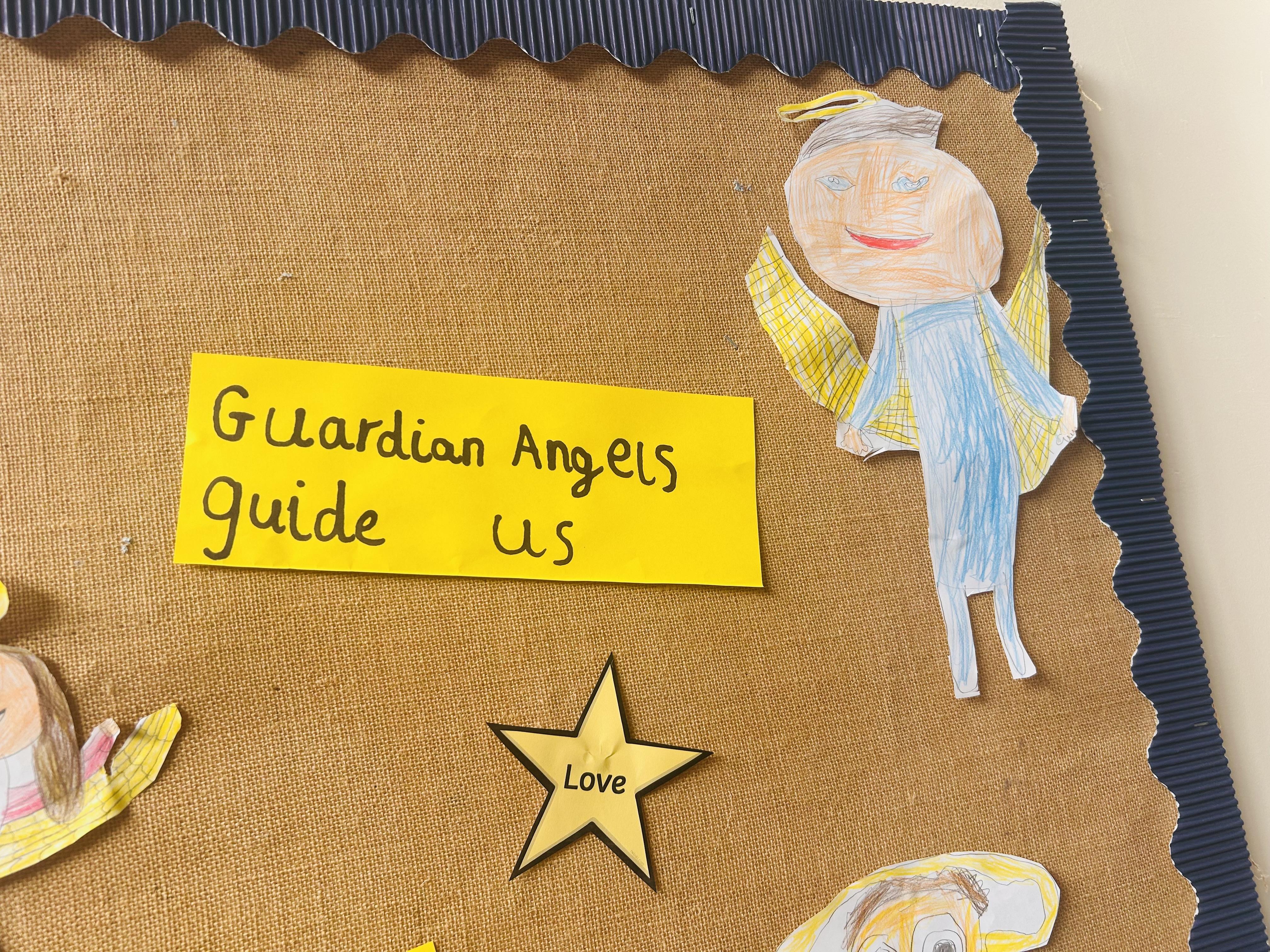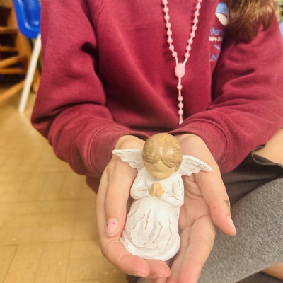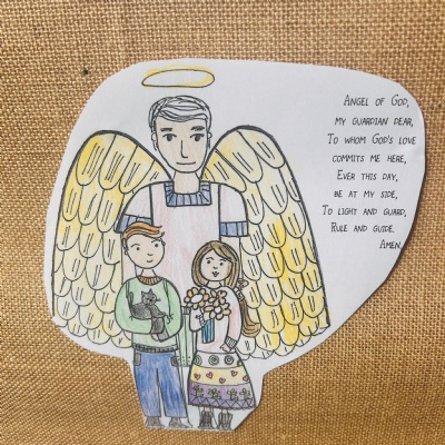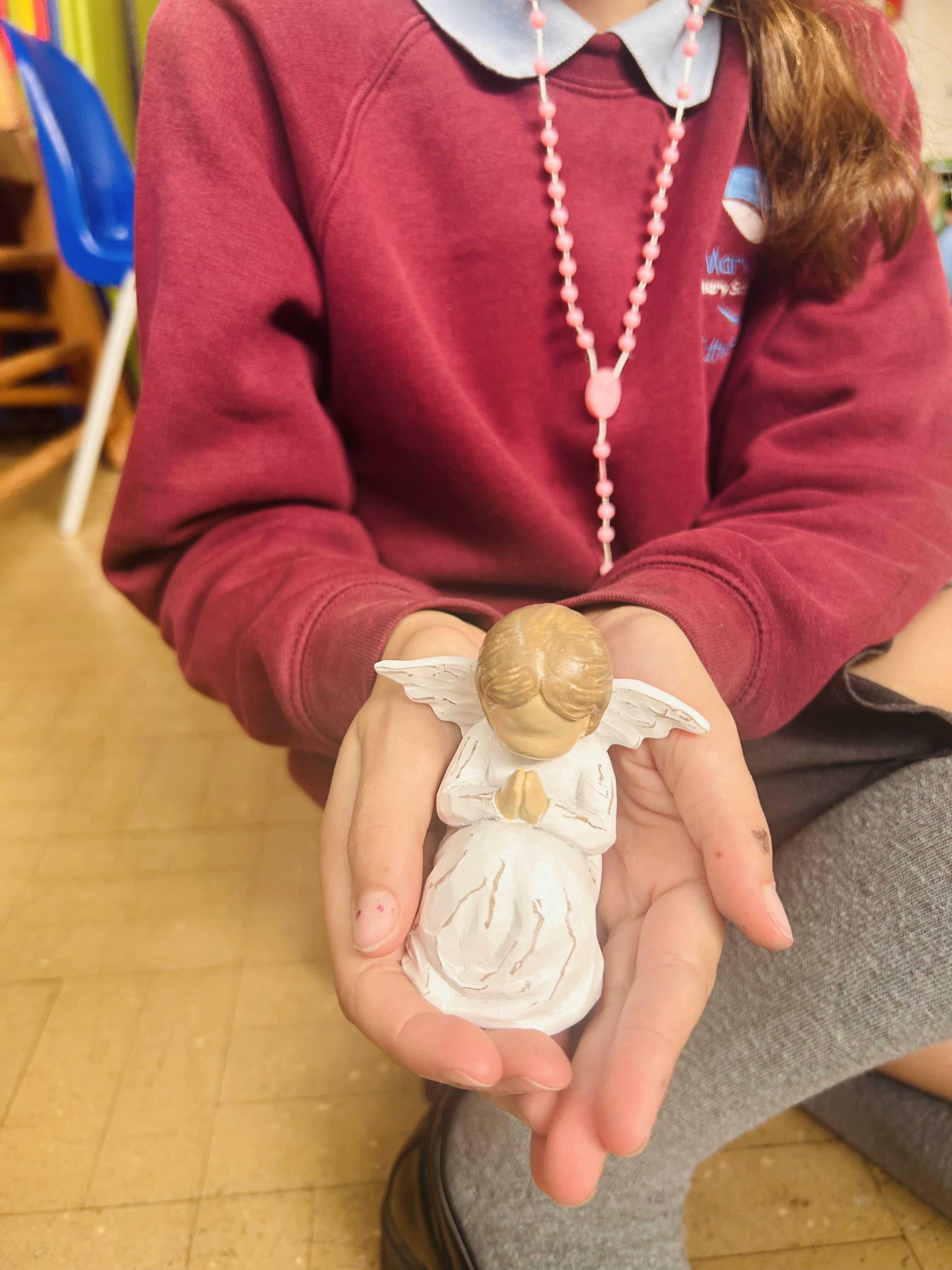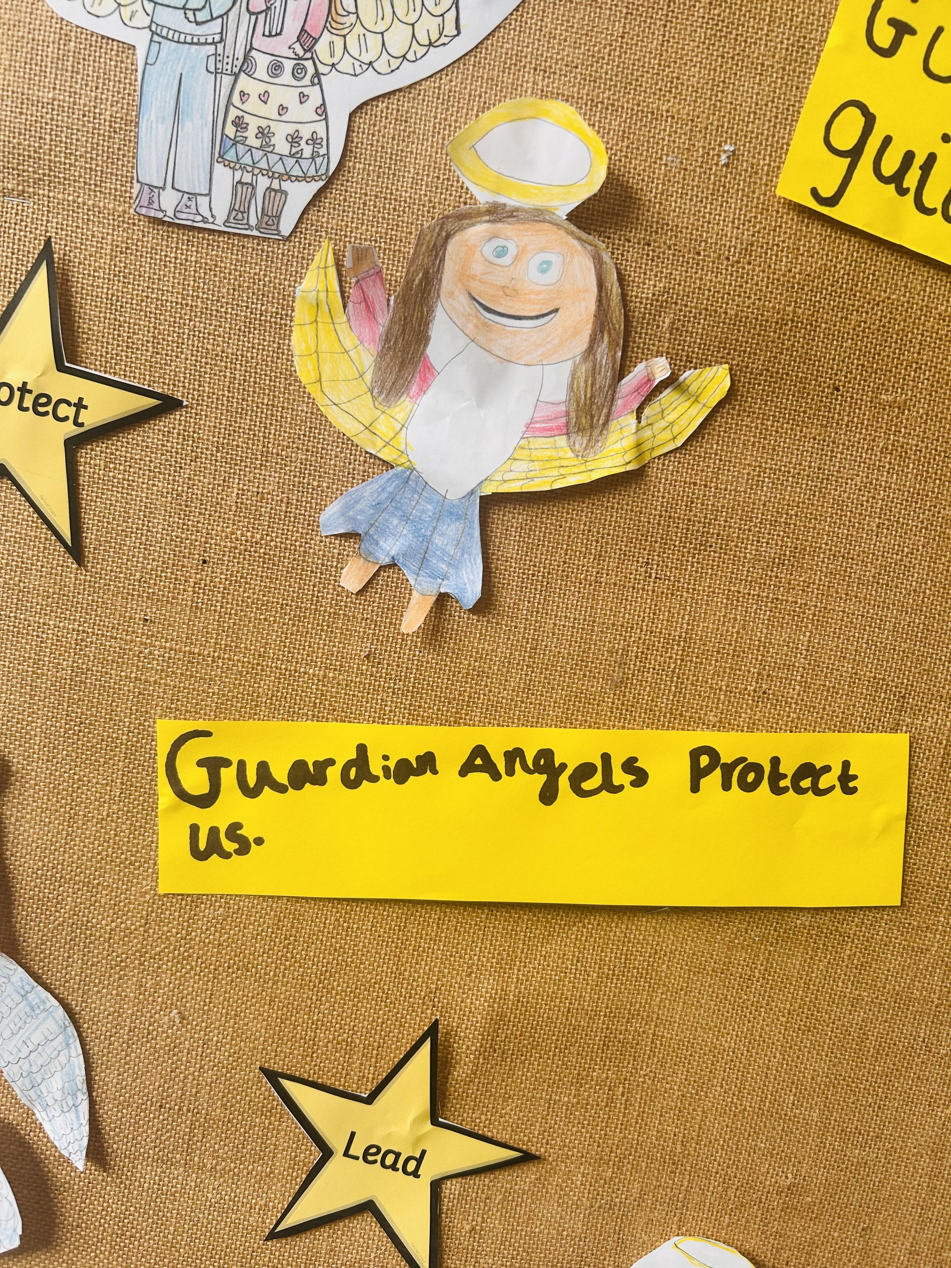 On Thursday 2nd October we celebrated the Feast of the Guardian Angels. All classes had been learning the guardian angel prayer and we prayed this together in a liturgy planned by Mrs Wolfenden and the GIFT Team. Father O'Brien celebrated with us and told us stories of times when people felt their guardian angel had helped them. Father reminded us we all have a guardian angel to protect us. Father blessed an angel statue for each classroom and each child went home with a small angel to keep.