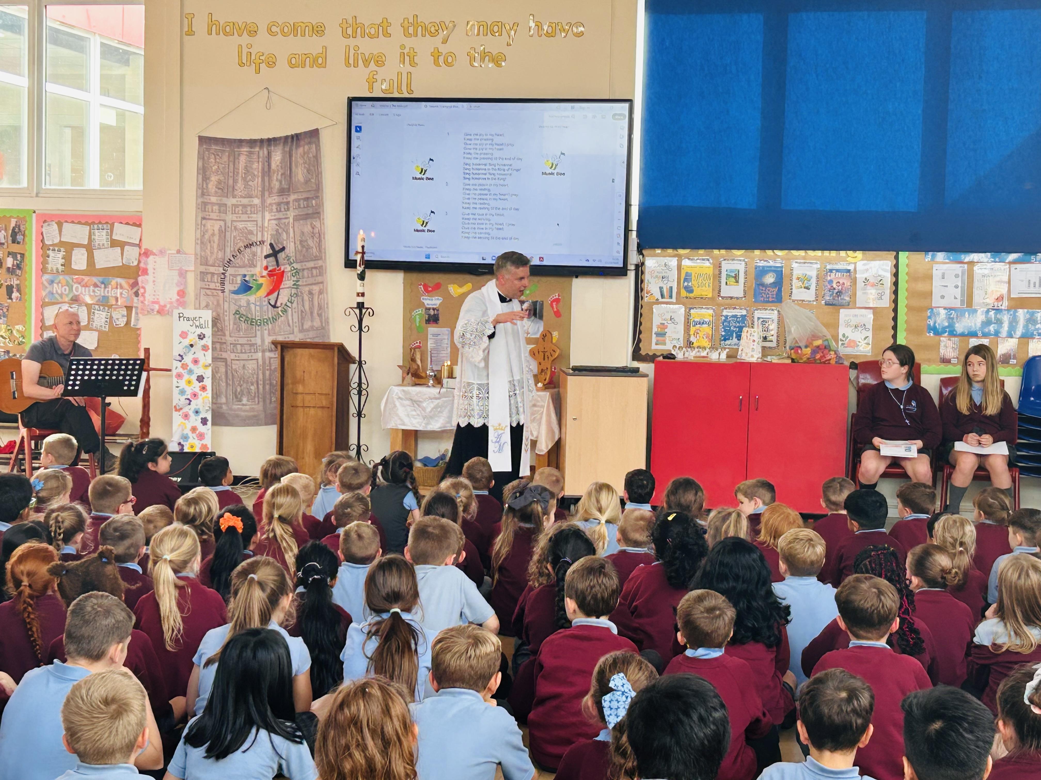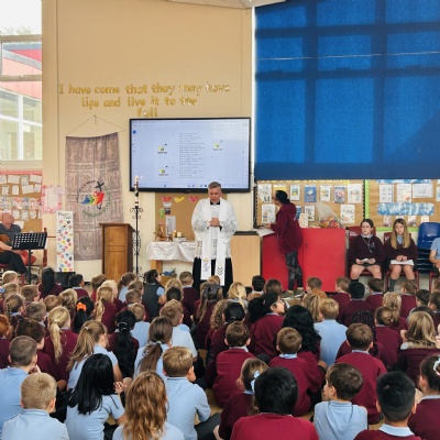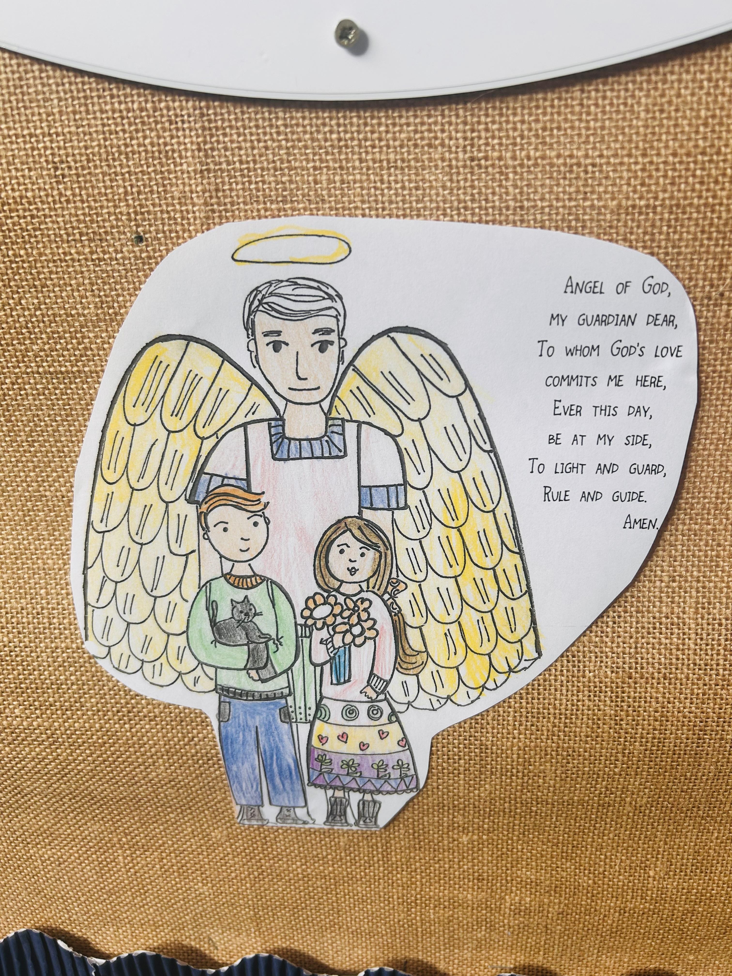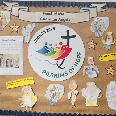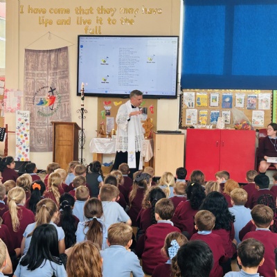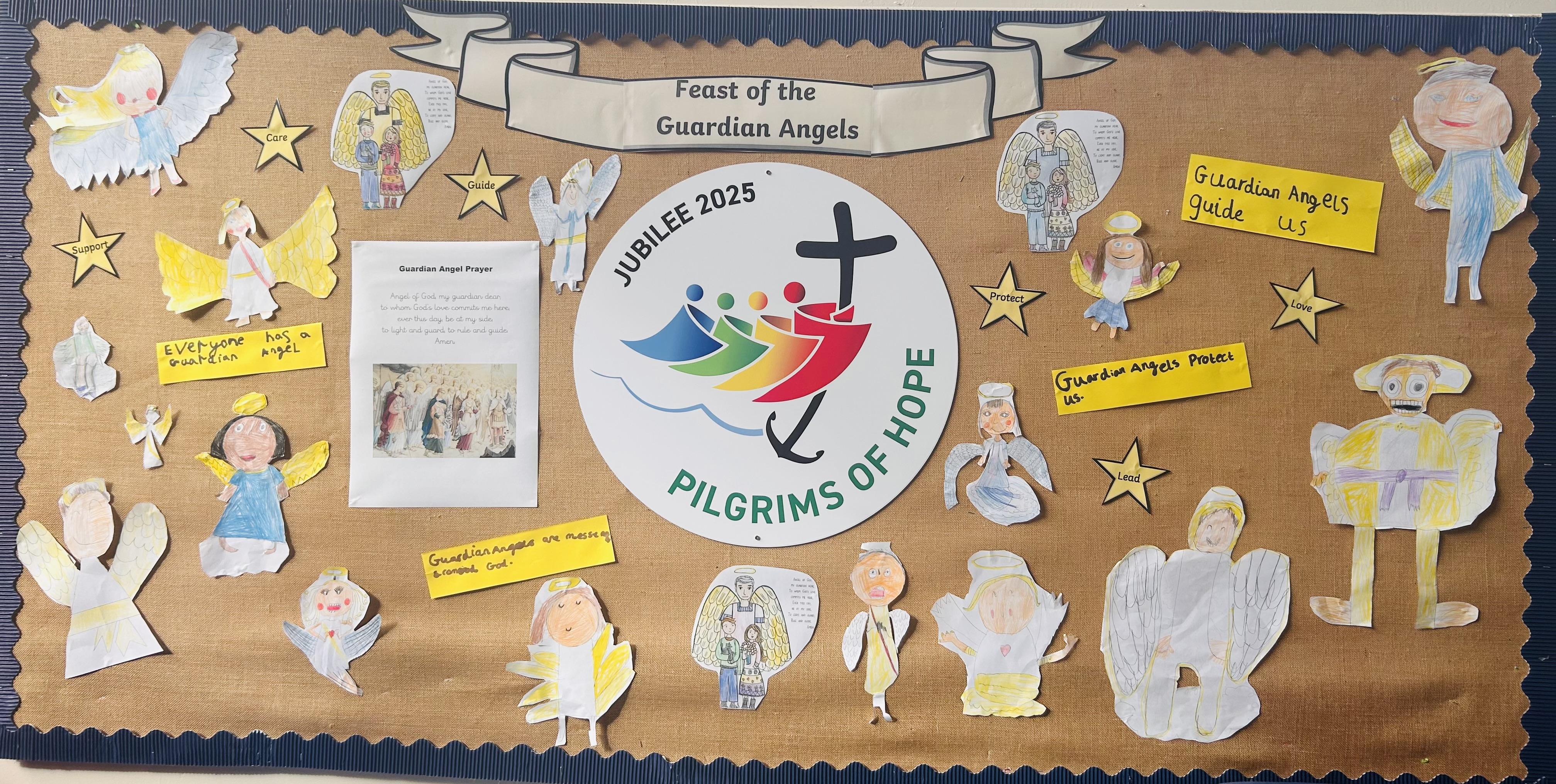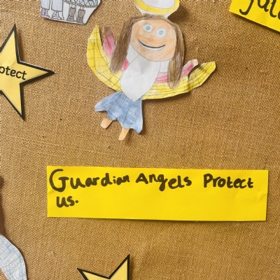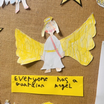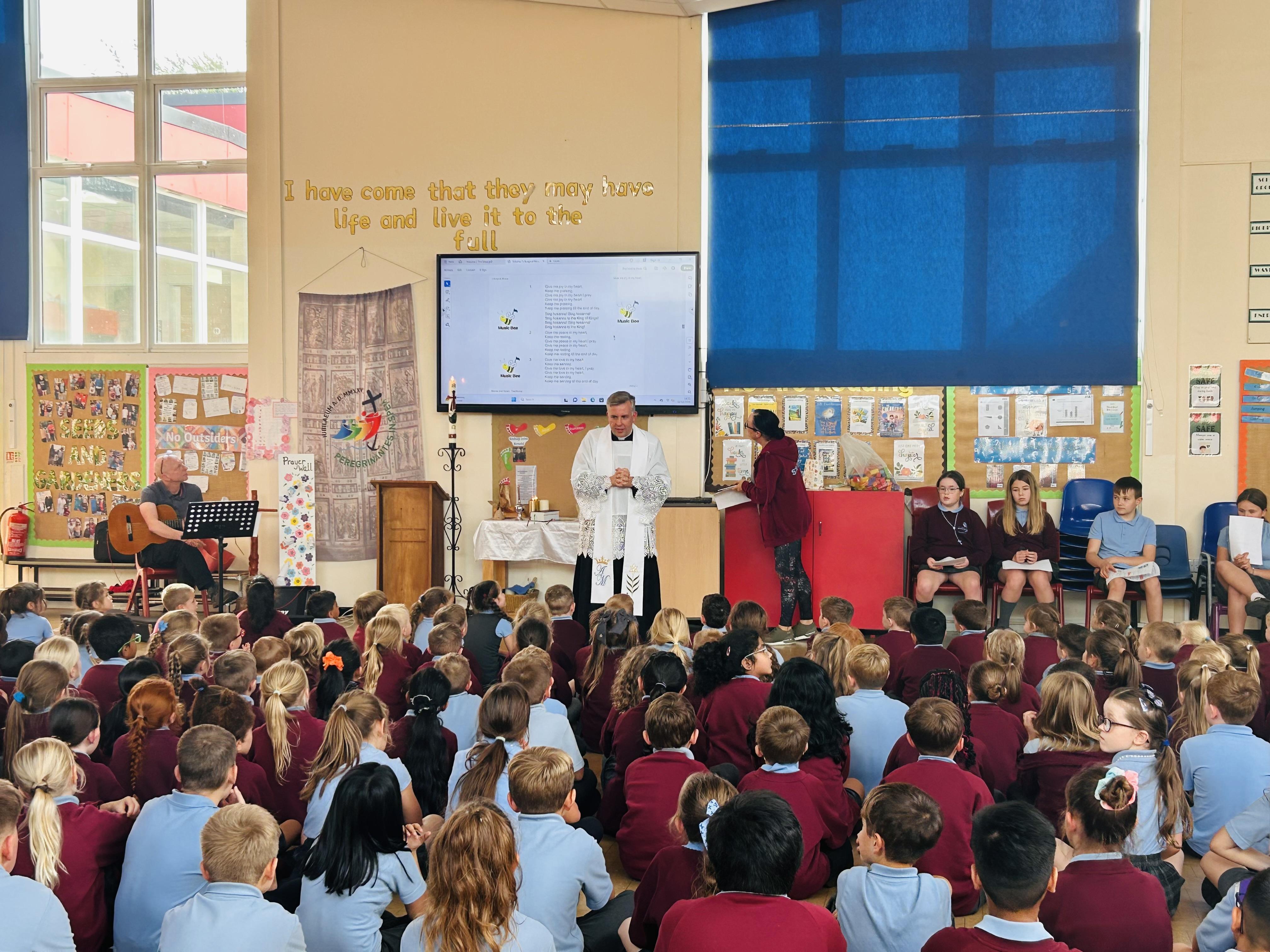 On Thursday 2nd October we celebrated the Feast of the Guardian Angels. All classes had been learning the guardian angel prayer and we prayed this together in a liturgy planned by Mrs Wolfenden and the GIFT Team. Father O'Brien celebrated with us and told us stories of times when people felt their guardian angel had helped them. Father reminded us we all have a guardian angel to protect us. Father blessed an angel statue for each classroom and each child went home with a small angel to keep.