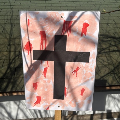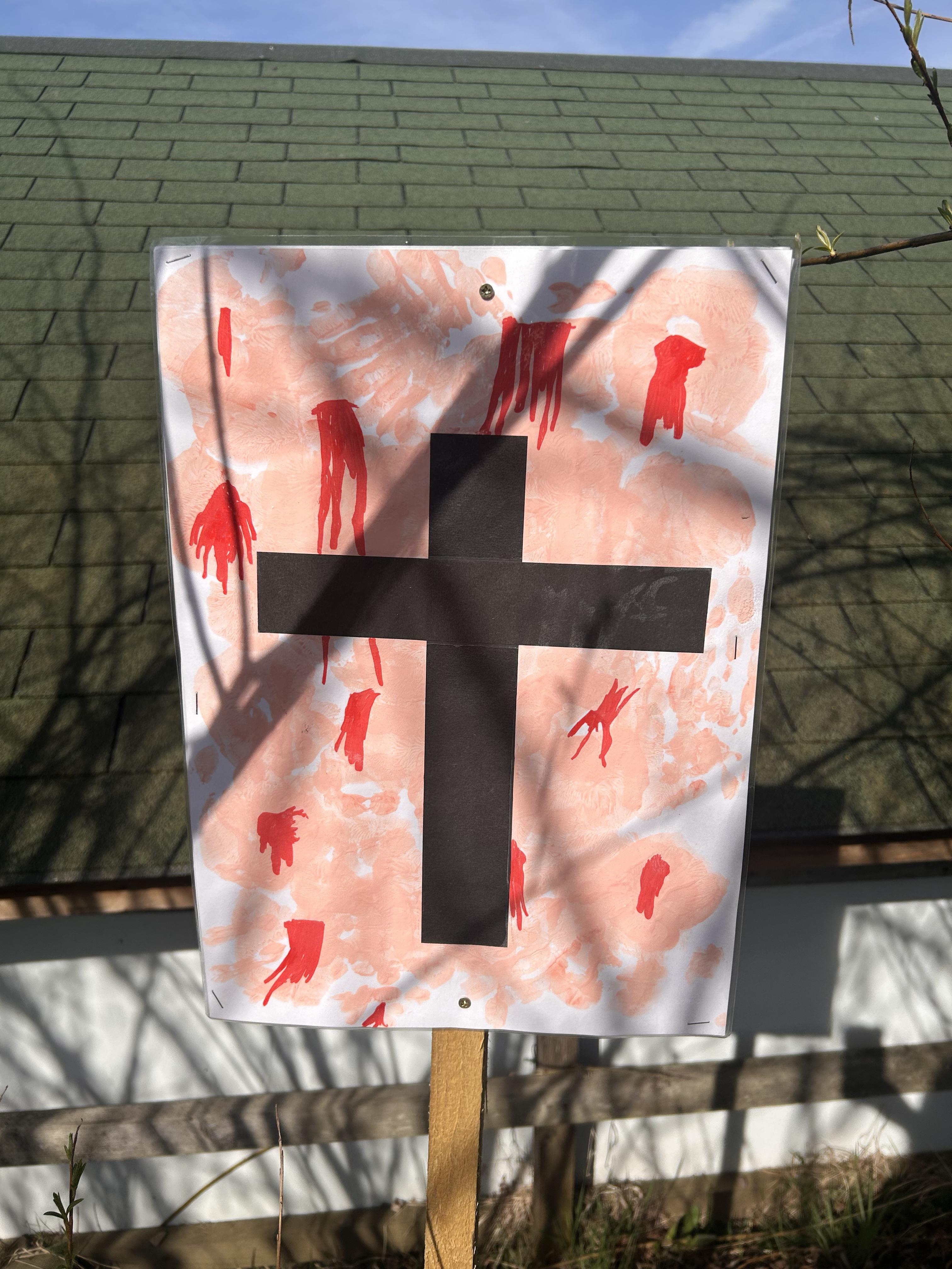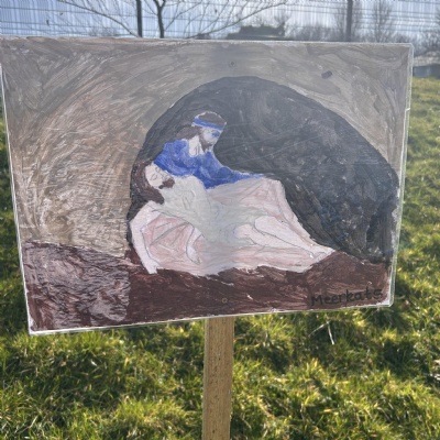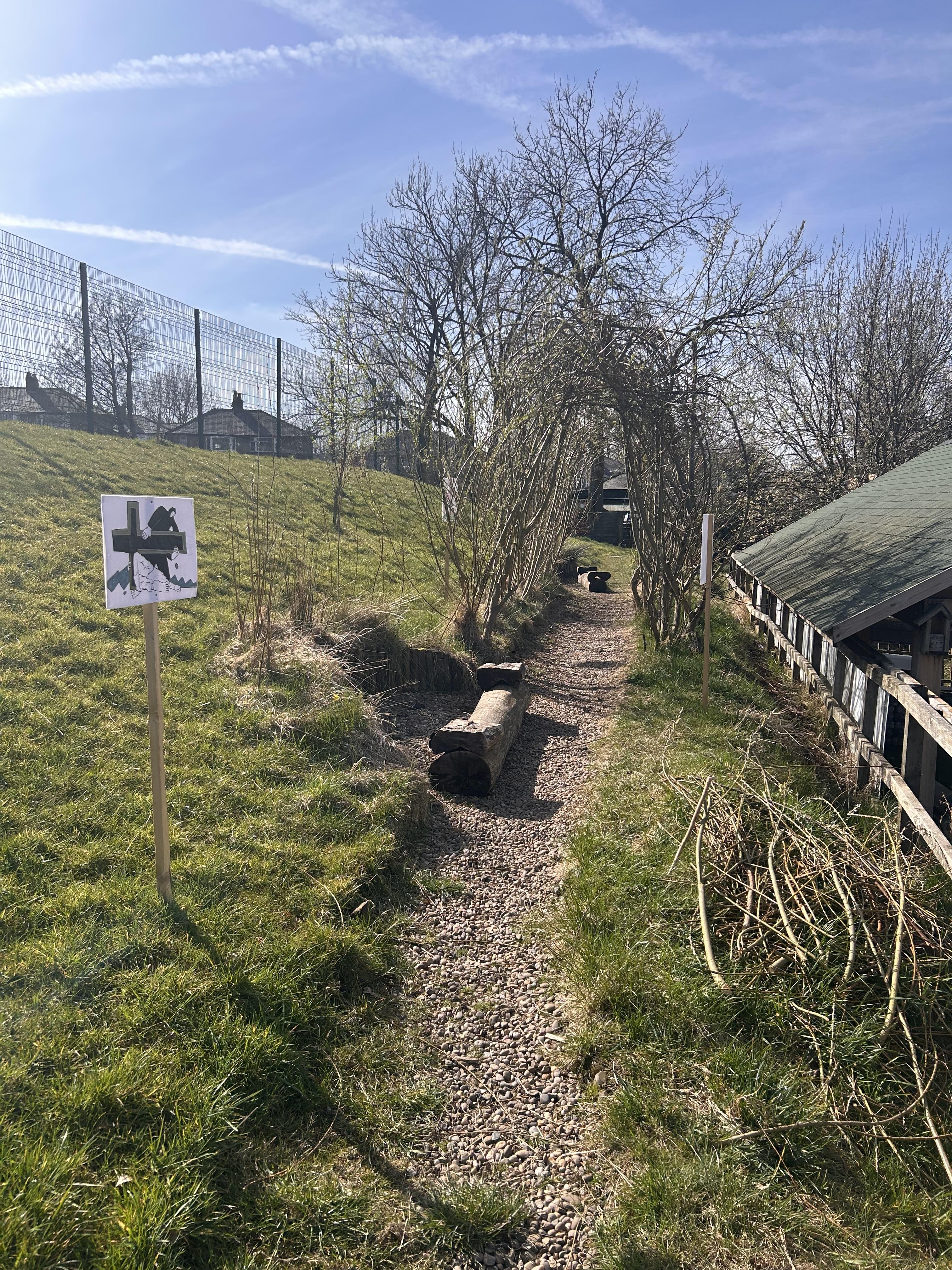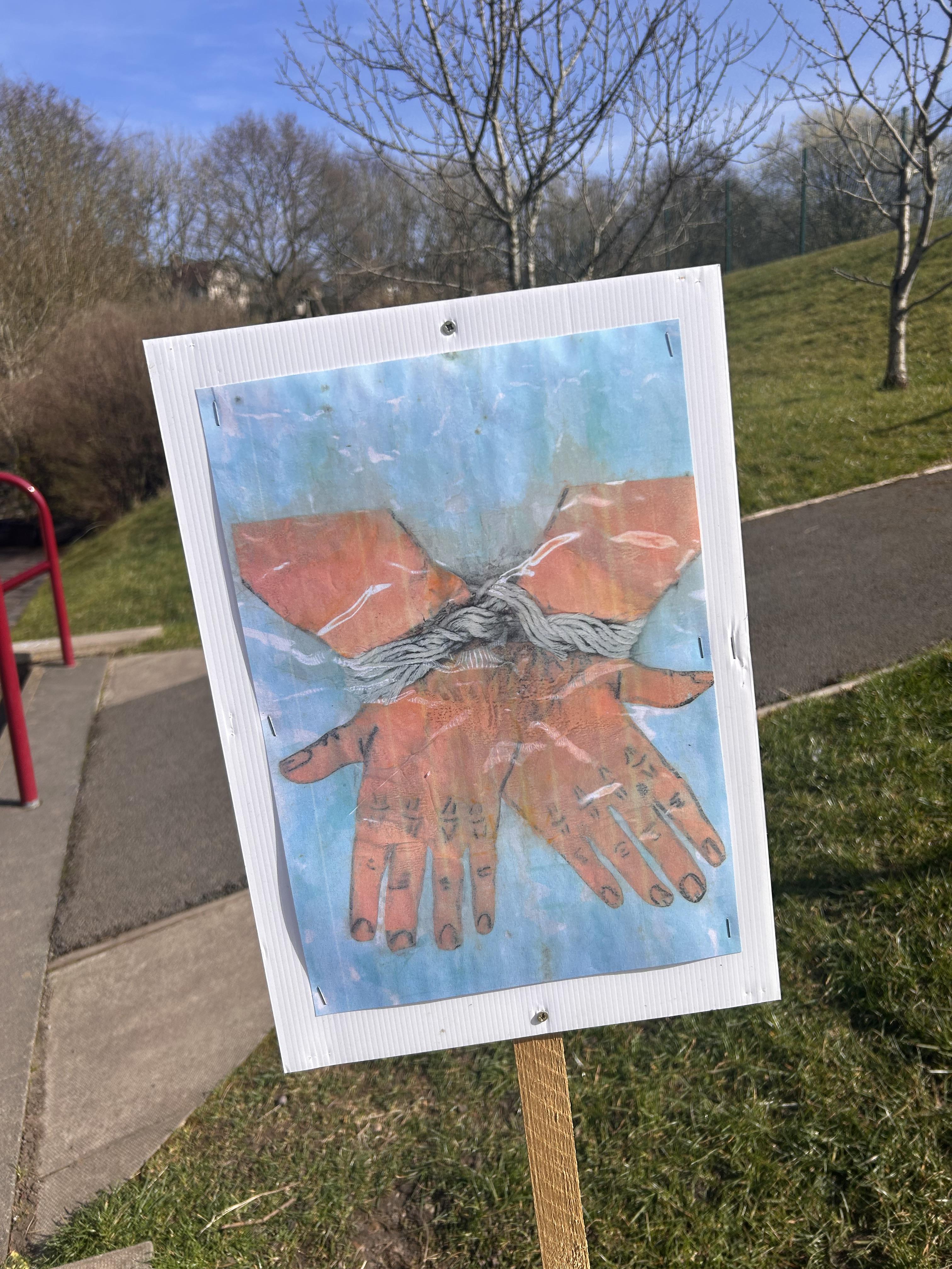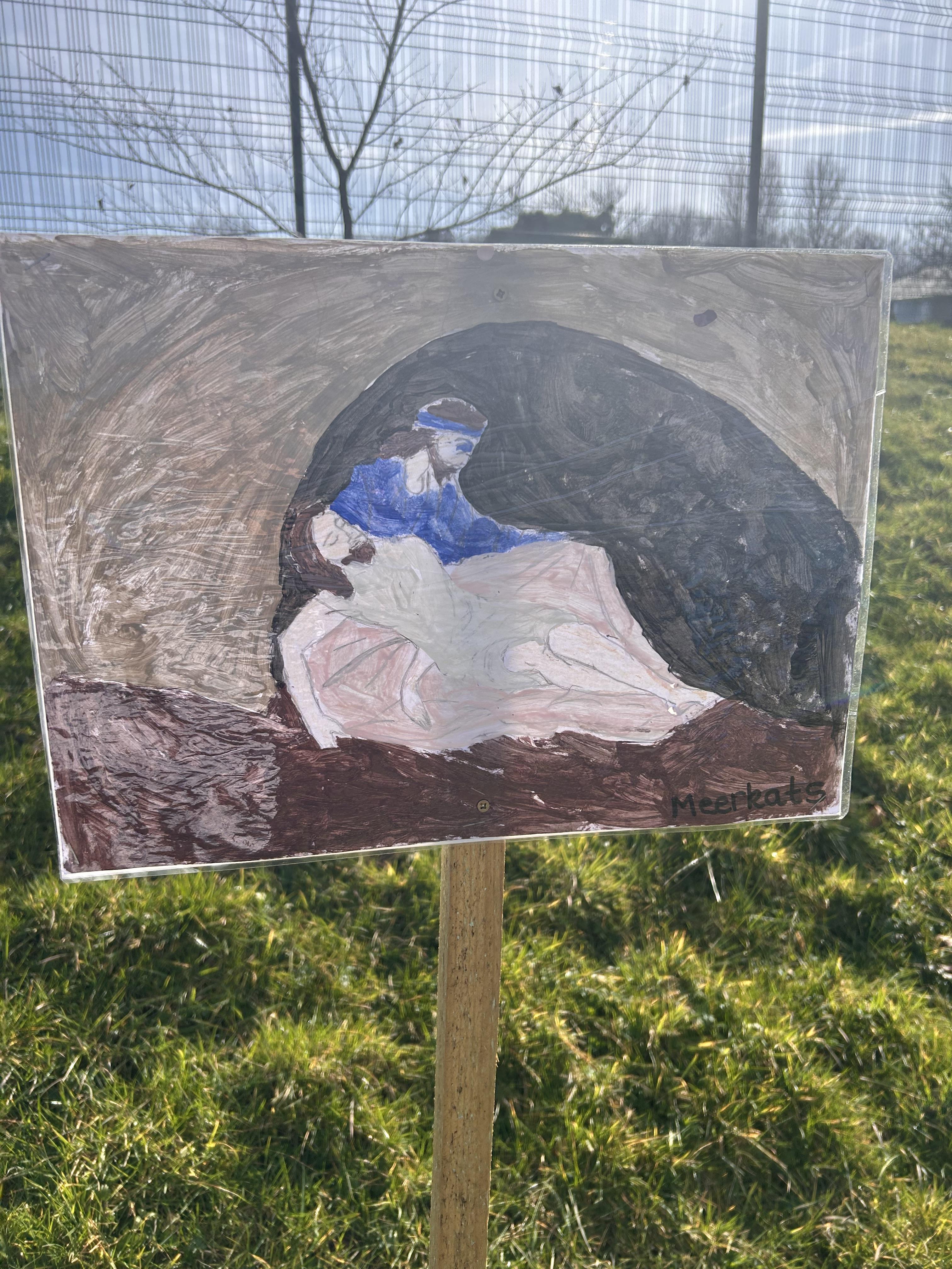 During Lent, pupils crated images of a stations of the cross. These were then enlarged, laminated and put around the sensory path on the playground. During Holy Week, classes went out to pray the Stations.
