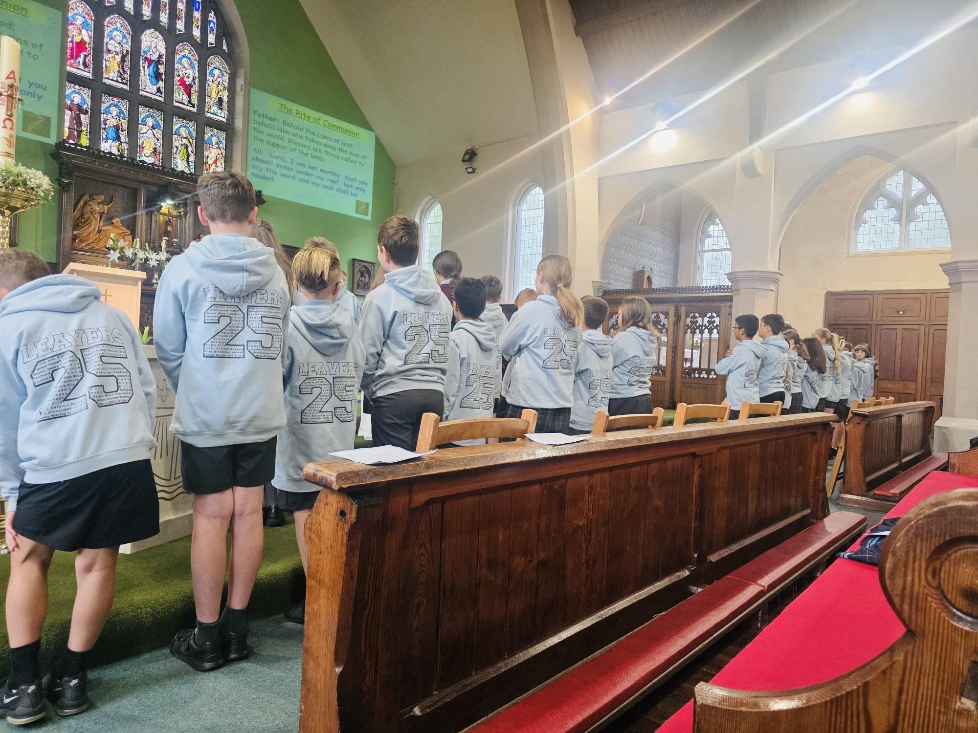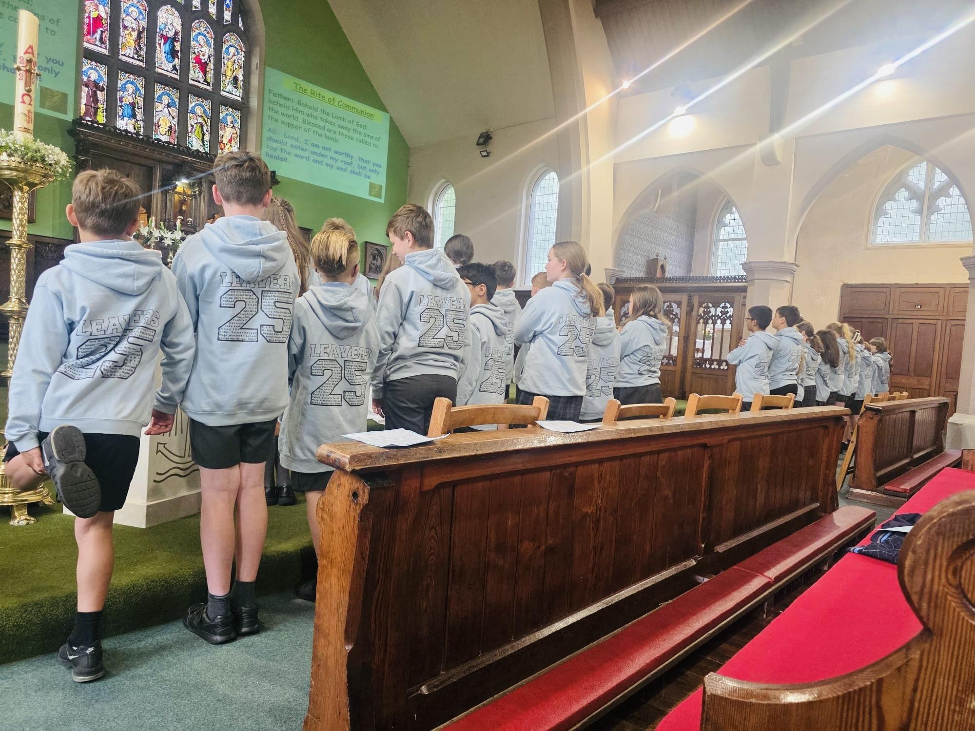 On Tuesday 15th July we all headed to church as a whole school community to celebrate the leaver’s Mass. Many parents and family members also attended this special Mass. The Year 6 pupils had chosen the readings, hymns, written bidding prayers and chose items to place on the altar during the offertory. Father O’Brien reminded them that their faith journey is not at an end and whichever secondary school they are attending, the doors of church are always open to them.