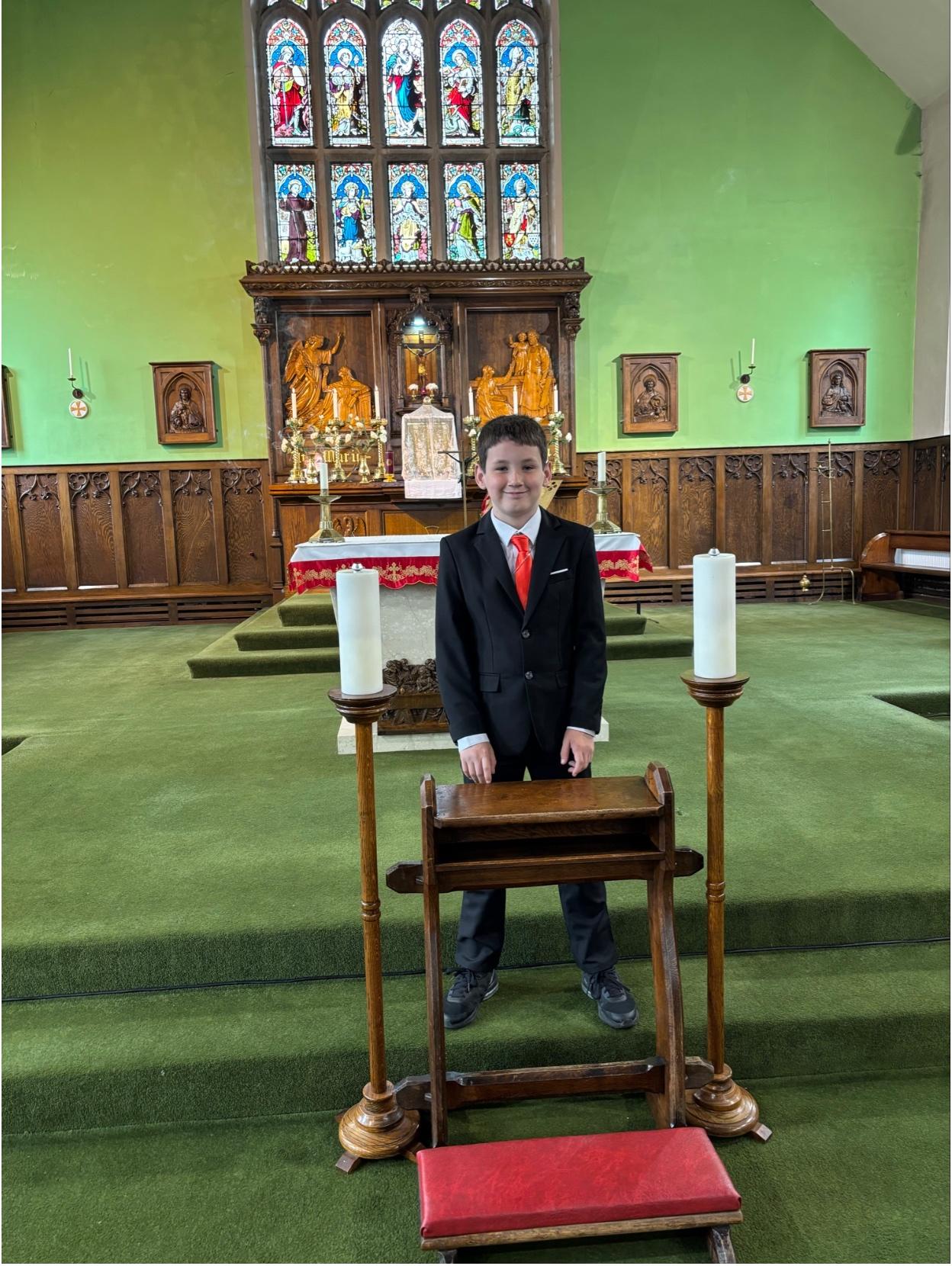 Congratulations to Oliver! Oliver has shown commitment to his faith and has made the sacraments of Reconciliation and Holy Communion.