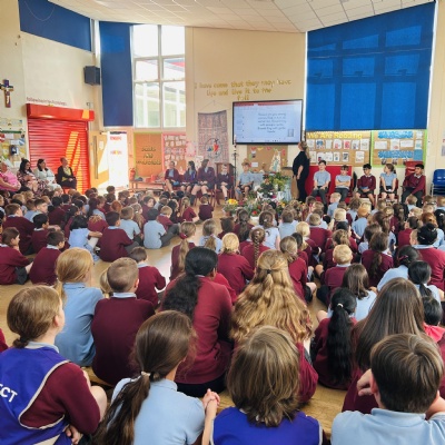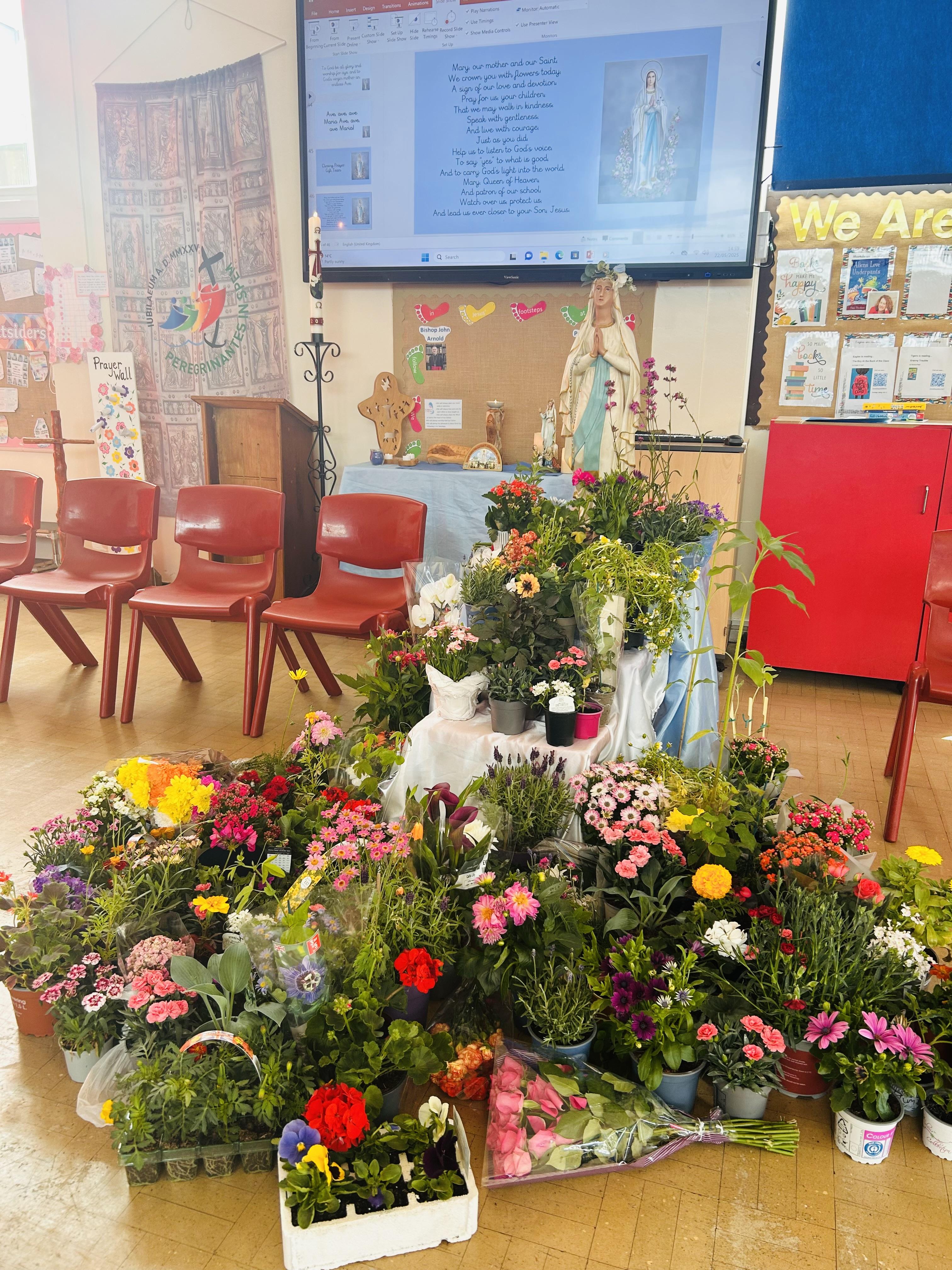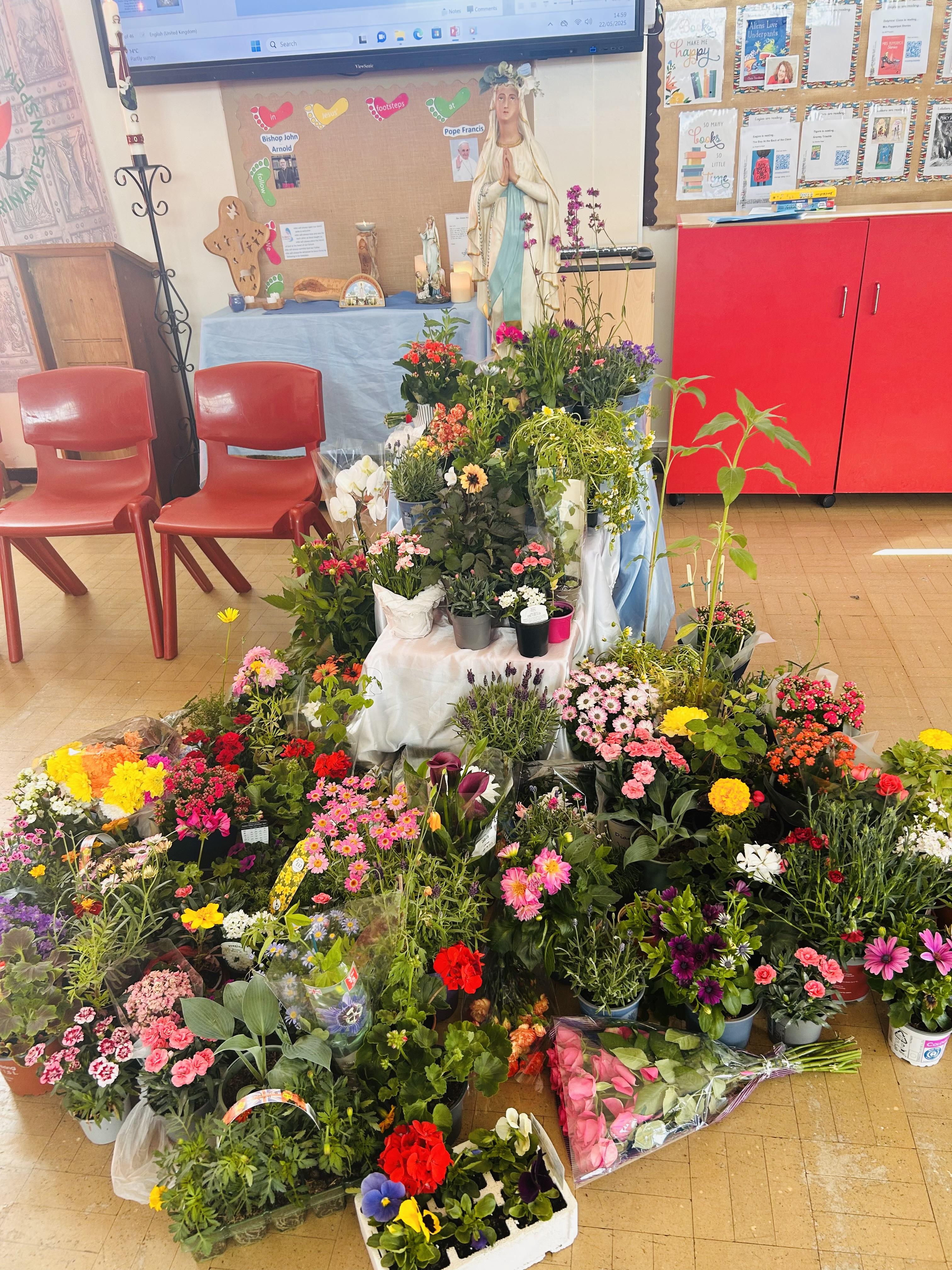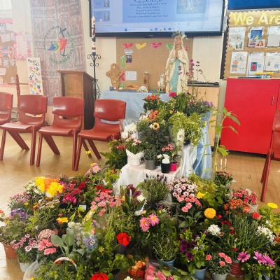 We held our annual crowning Our Lady liturgy on Thursday 22nd May. Pupils were invited to bring in plants and flowers to place around the statue. Our pupil GIFT Team had prepared refelctions, readings and bidding prayers for the liturgy and read these beautifully. The plants and flowers will be planted by our Year 6 pupils in the garden around the statue and the school grounds.