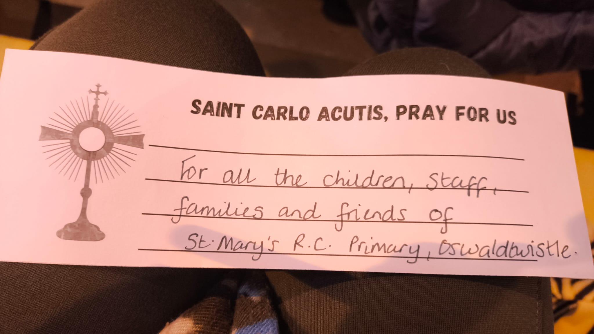 We prayed for our families, school and our local community and wrote prayer petitions which will be taken and placed under Carlo's tomb in Assisi for 24hrs before a Mass is said for all our intentions.