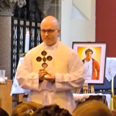 Monseigneur Anthony (pictured with the children) spoke about how Carlo was just an ordinary boy who was told off in class for joking around! But he worked to better himself and proves that anyone can become a saint.