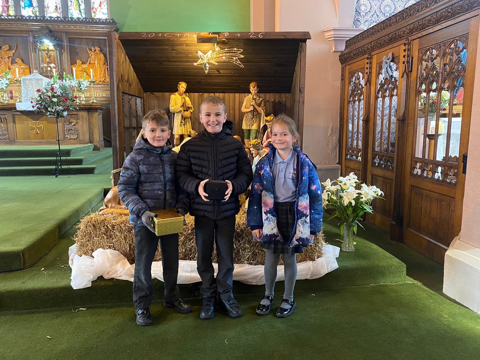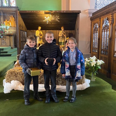 On Tuesday 6th January we celebrated the feast of the Epiphany. Wolf Cubs and Eagles Classes attended Mass in Church and we have all learned about the three wise men arriving with gifts of gold (for a king), frankincense (signifying the link to God and prayers rising) and myrrh (for His suffering to come). Father O’Brien also blessed chalk to write the Epiphany blessing above our doors. We wrote the blessing about the door at school and we are sent each child home with a blessed piece of chalk so they too could write the blessing on their doors at home.