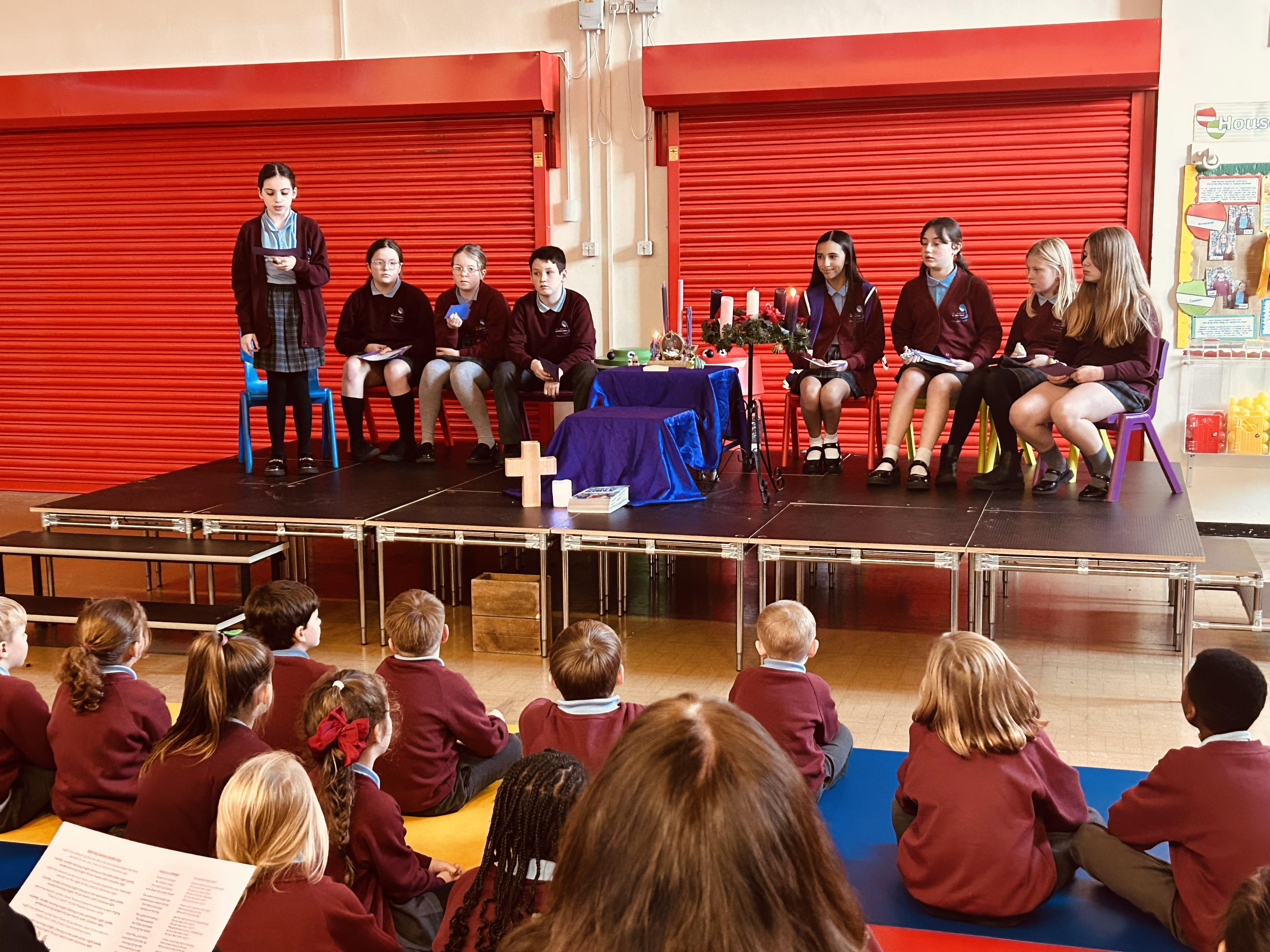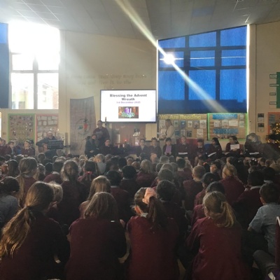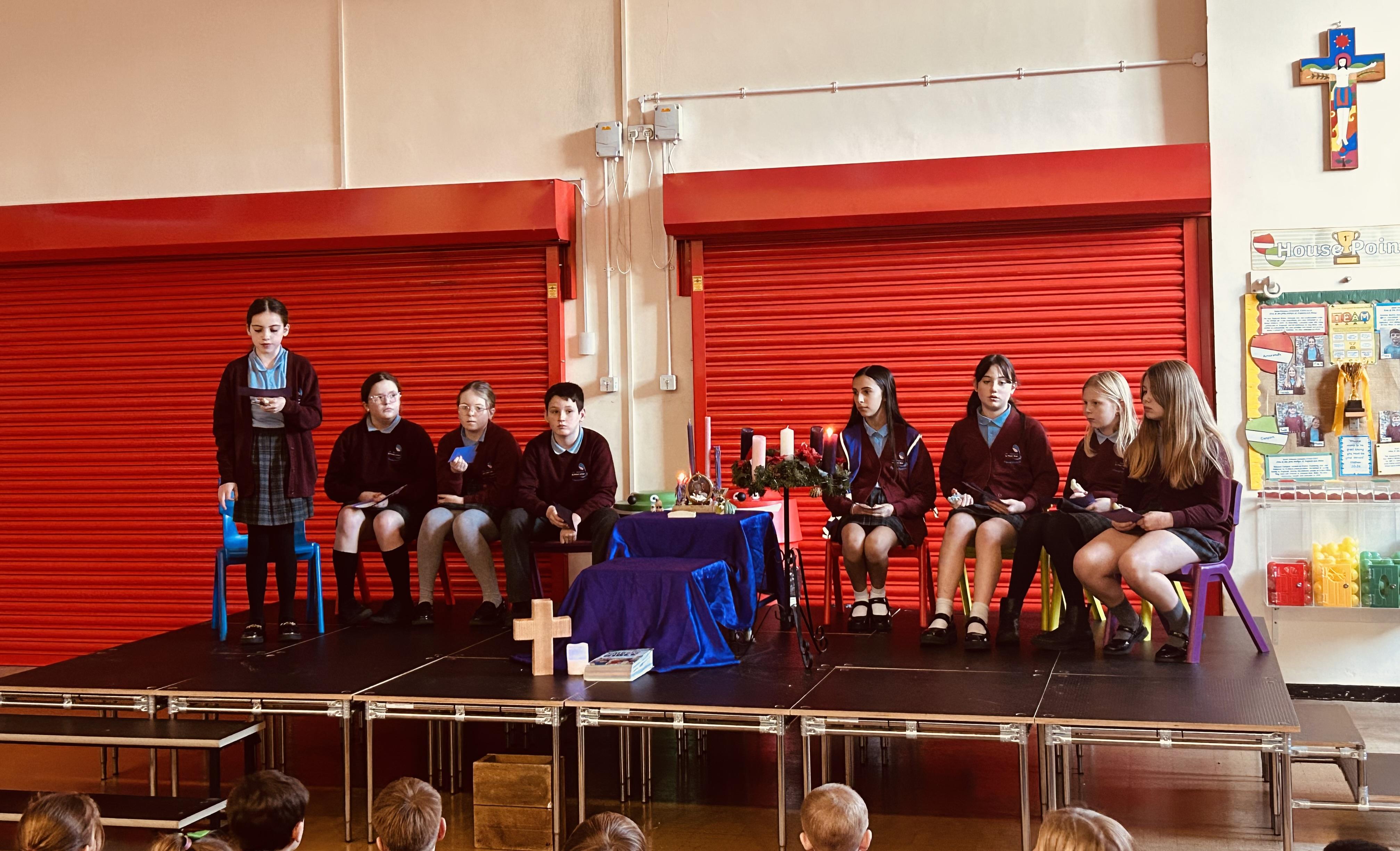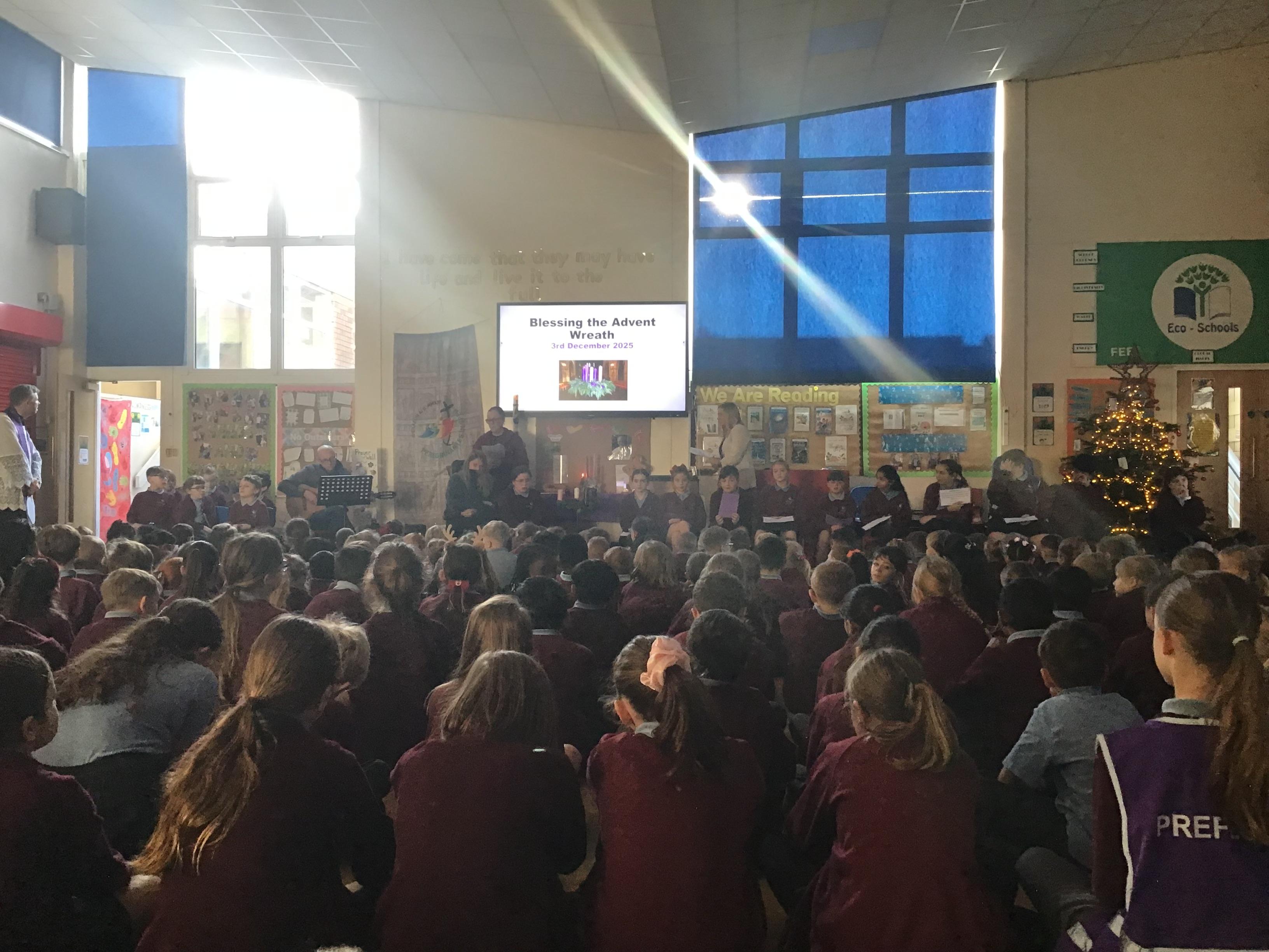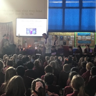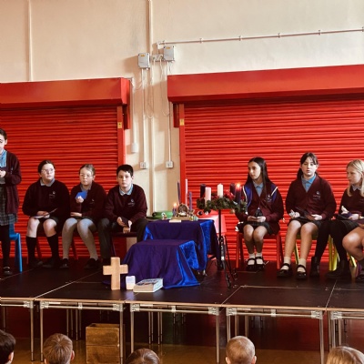 On Wednesday 3rd December we welcomed Father O’Brien into school for a liturgy to bless our Advent wreath. The GIFT Team explained the meaning of advent to us all, the Gospel was read along with bidding prayers asking for help to guide us during Advent to prepare ourselves for the coming of the Lord.