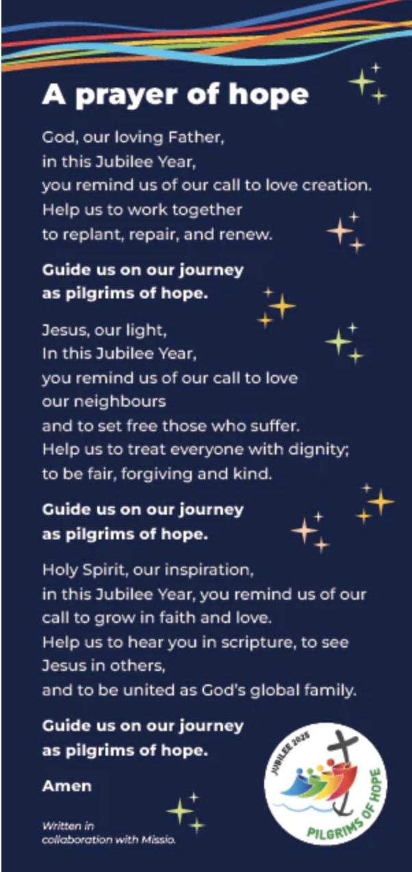 In 2025, the Church is celebrating a Jubilee Year. A Jubilee year happens every quarter century and is a ‘Holy Year’ and a time of renewal and a deepening of our relationship with God.