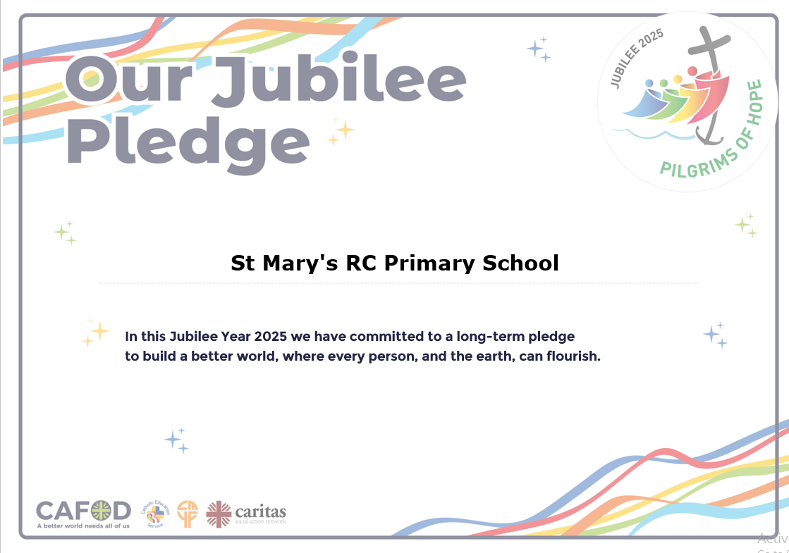 All pupils in school made a jubilee pledge for the Year of Hope which we shared during our Celebration of the Word together. You can read some of the pledges below: