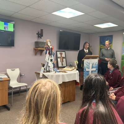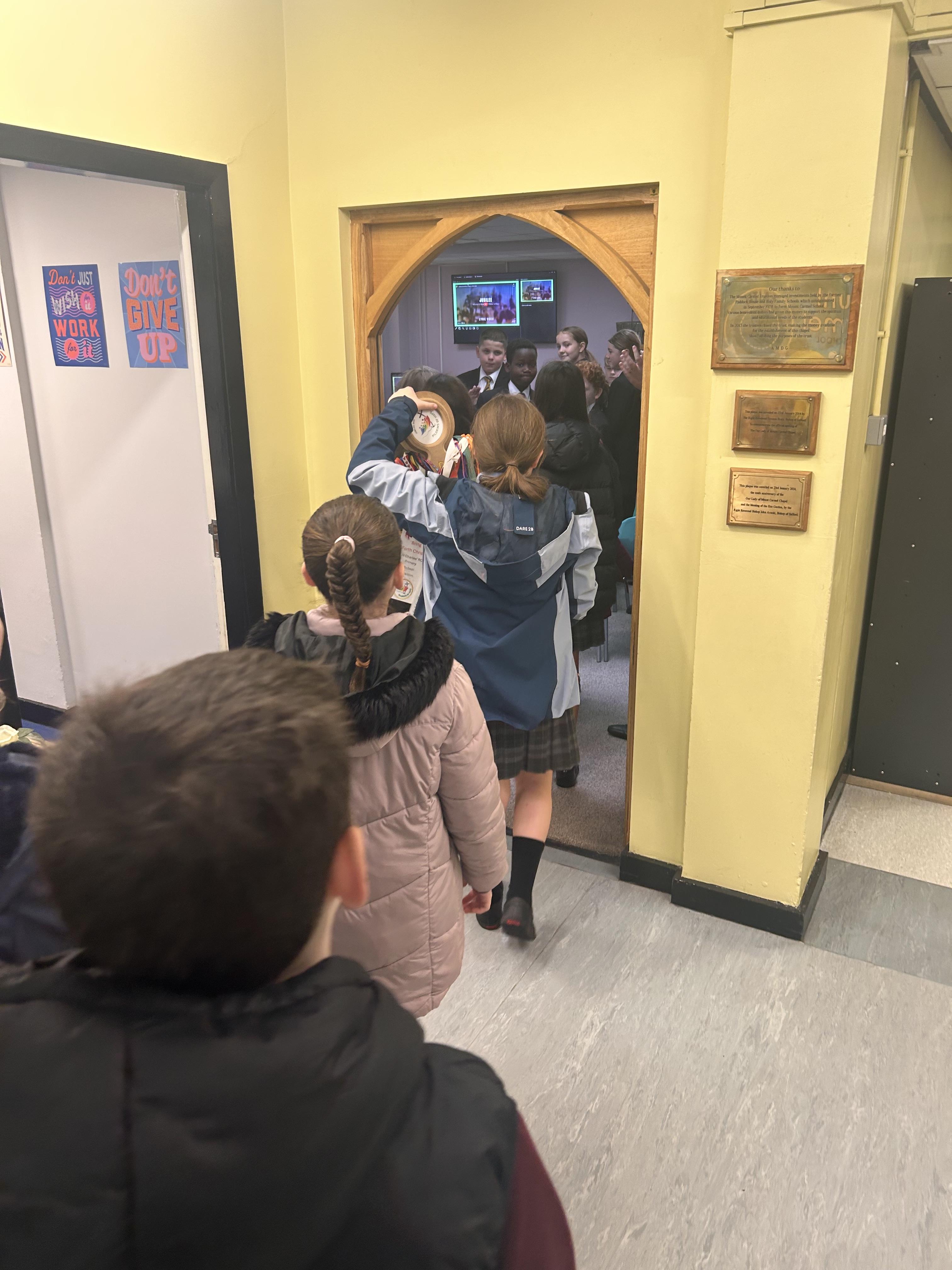 On Wednesday 5th November, our pupil GIFT Team carried the anchor up to Mount Carmel RC High School. We were welcomed ay Mount Carmel by pupils and staff. Mr Davies shared with us his recent trip to Rome and how he had seen the Holy Doors. He also showed us photographs.