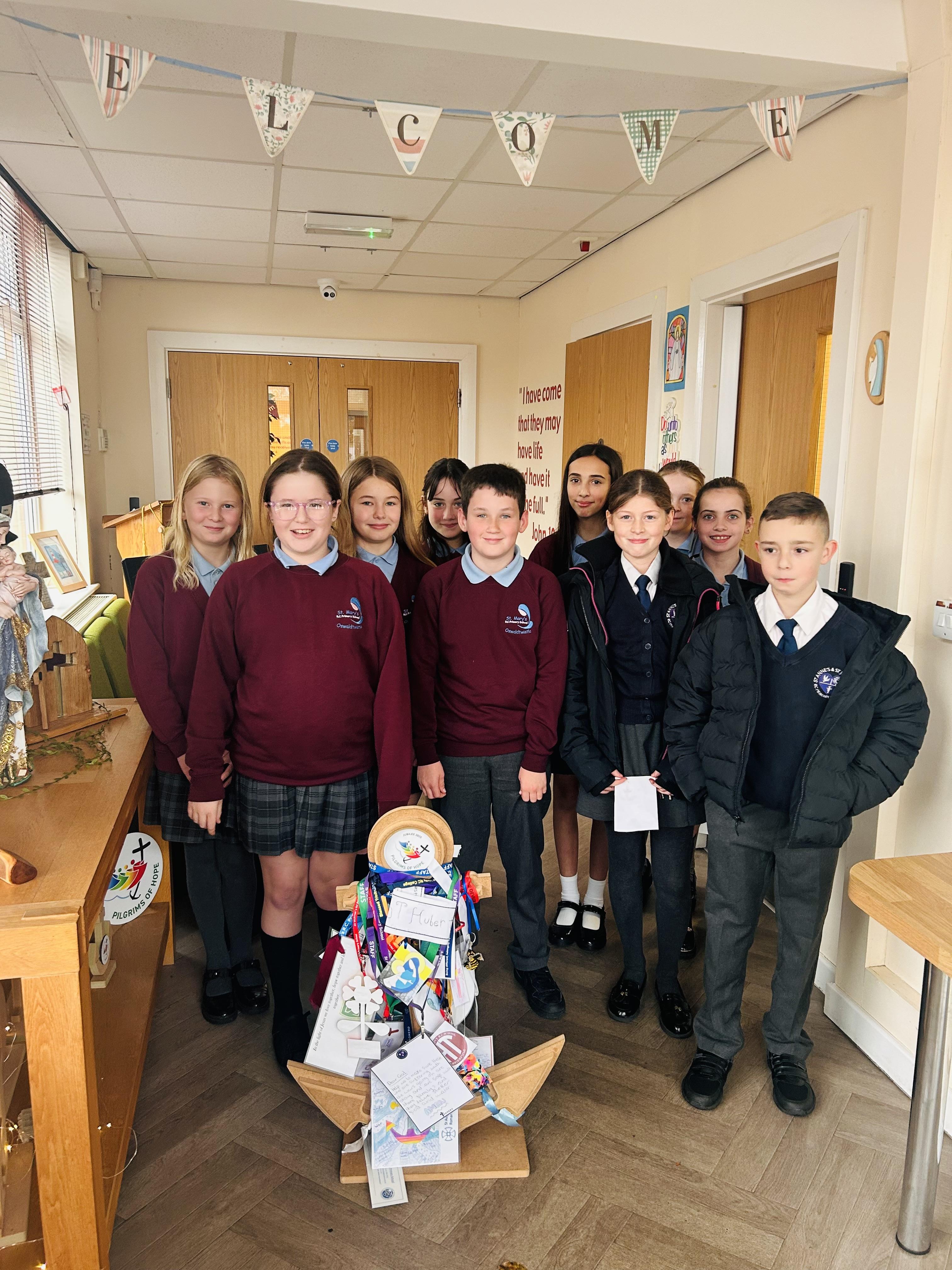 On Monday 3rd November we received the Jubilee anchor from Saint Anne's and Saint Joseph's RC Primary School. Our pupil GIFT team welcomed their pupils and we took the anchor into our school.