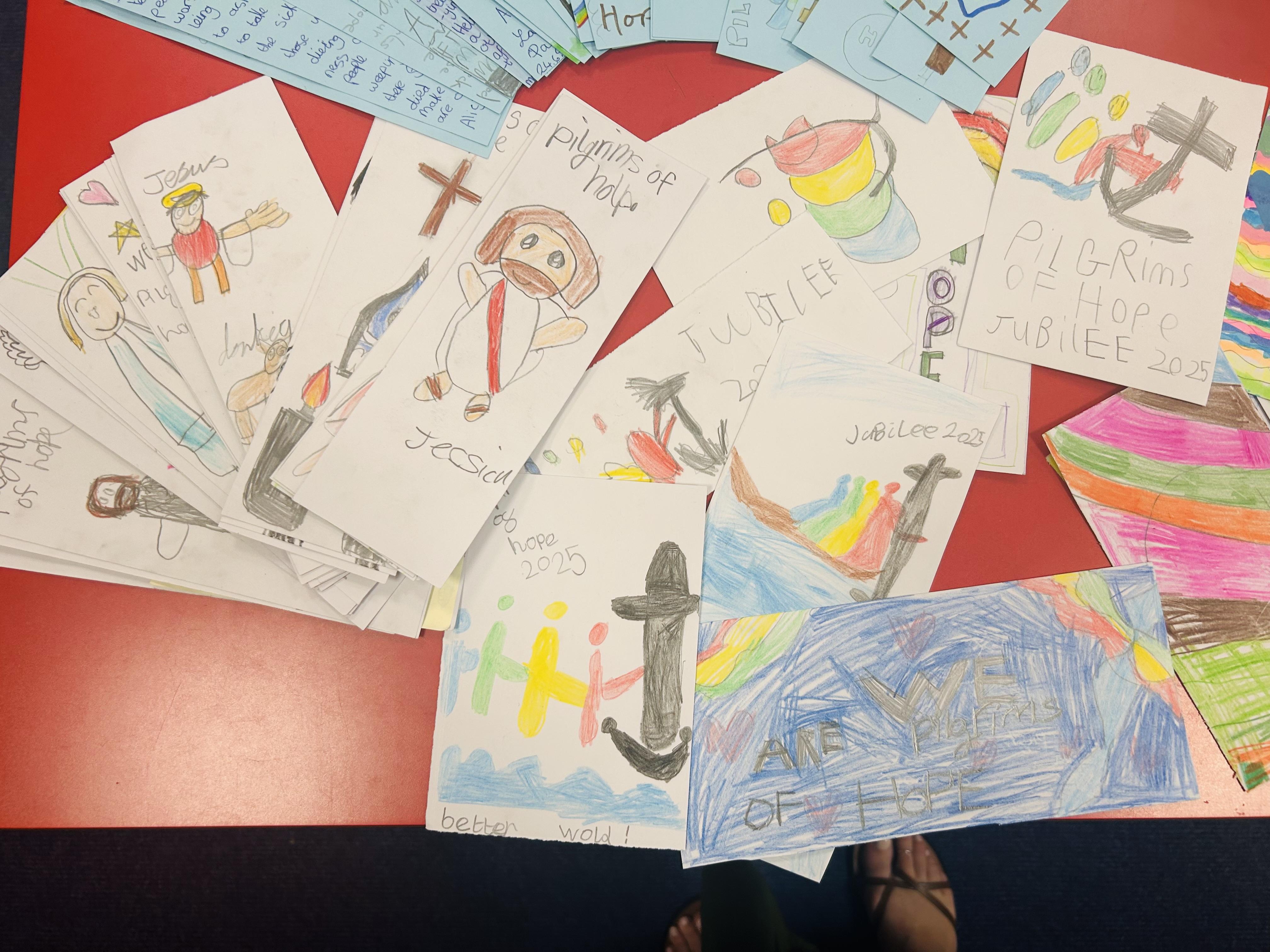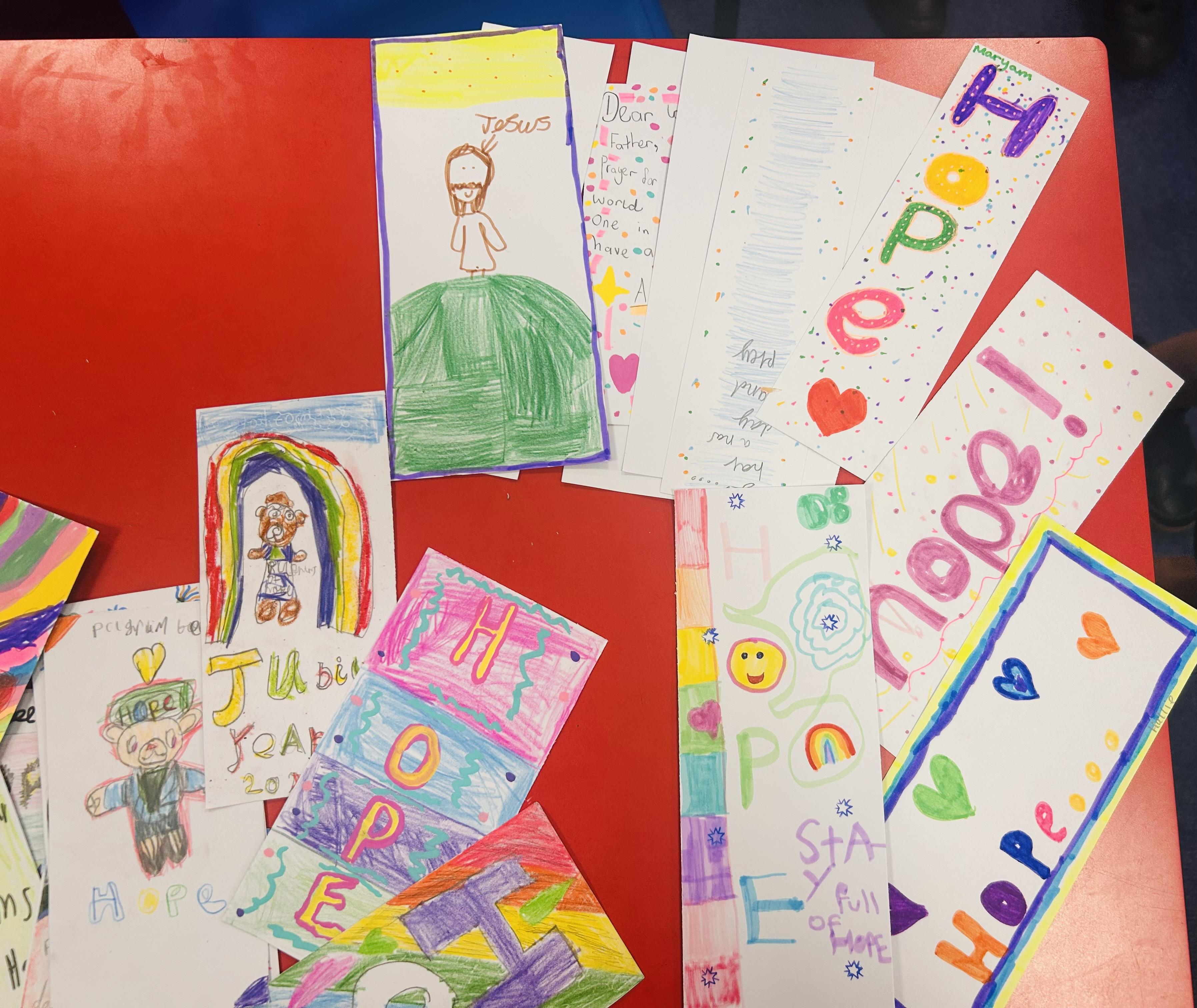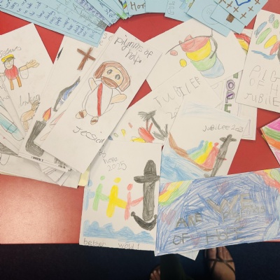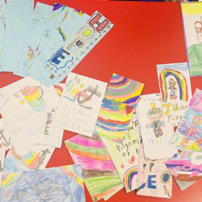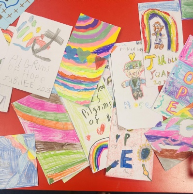 As part of the Year of Hope, all pupils in school made Jubilee prayer cards. These were taken to Church where Father O'Brien will distribute them to parishioners. All the prayer cards really got the message across of Hope and what this means for us as Catholics.