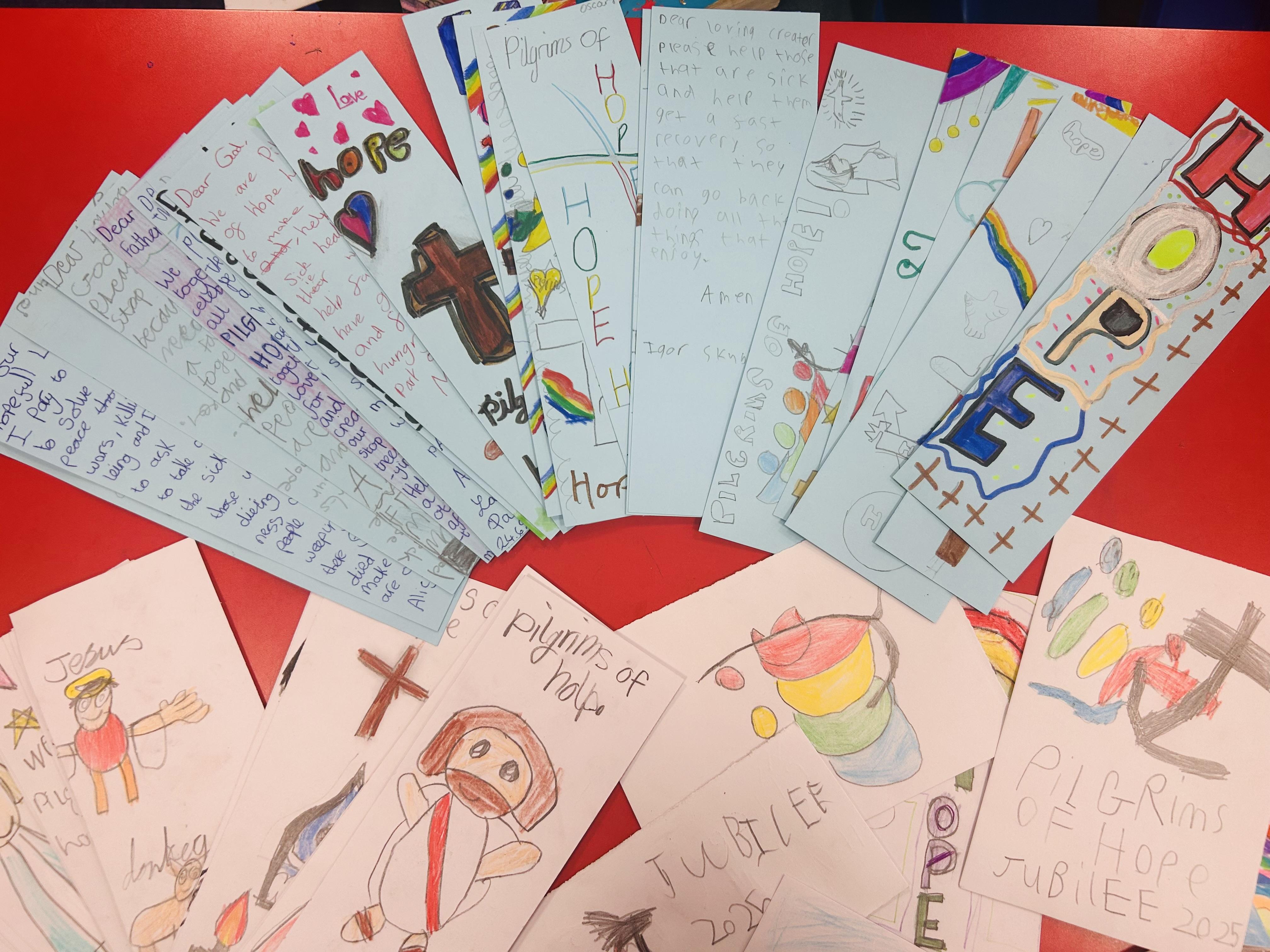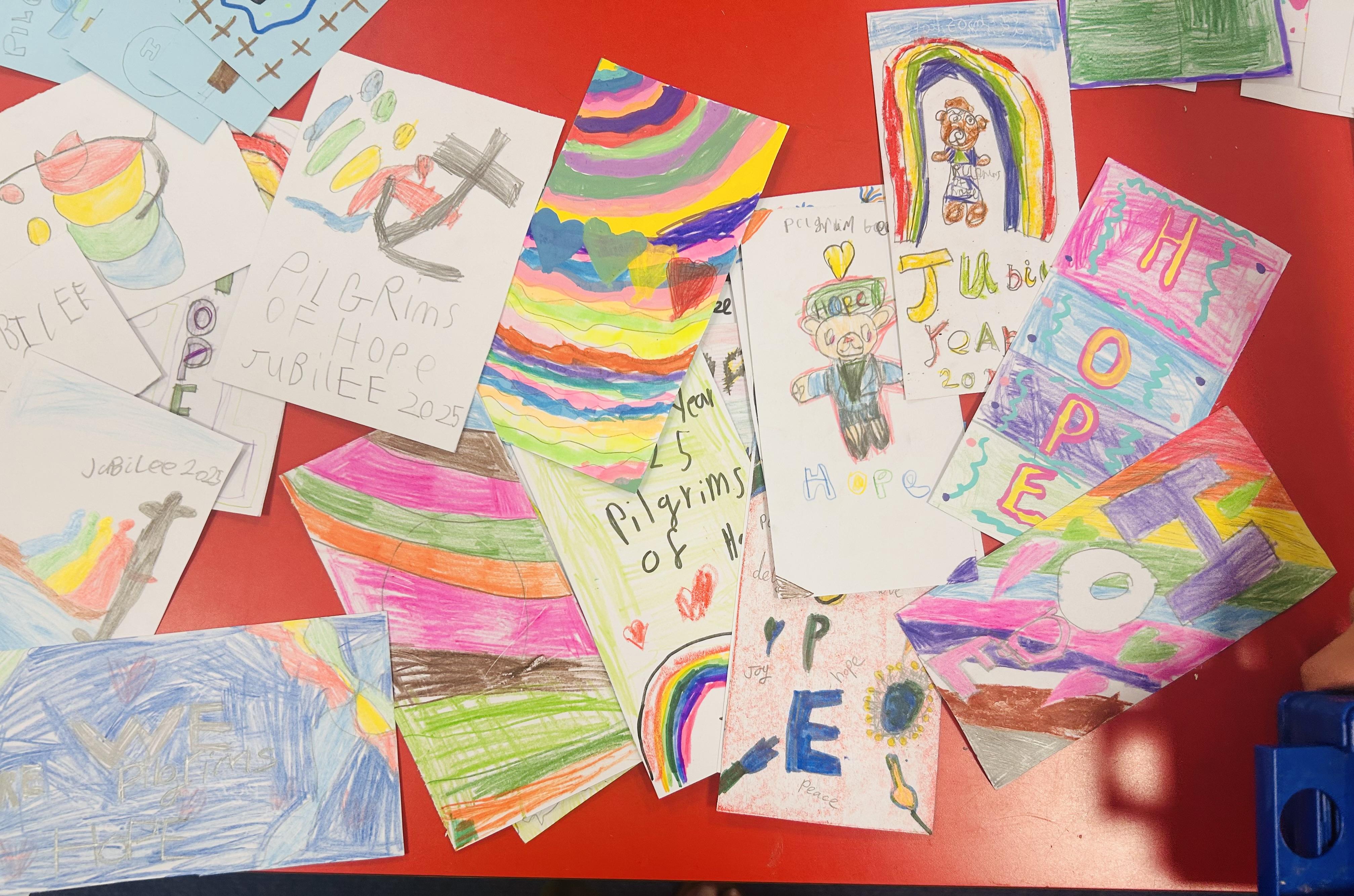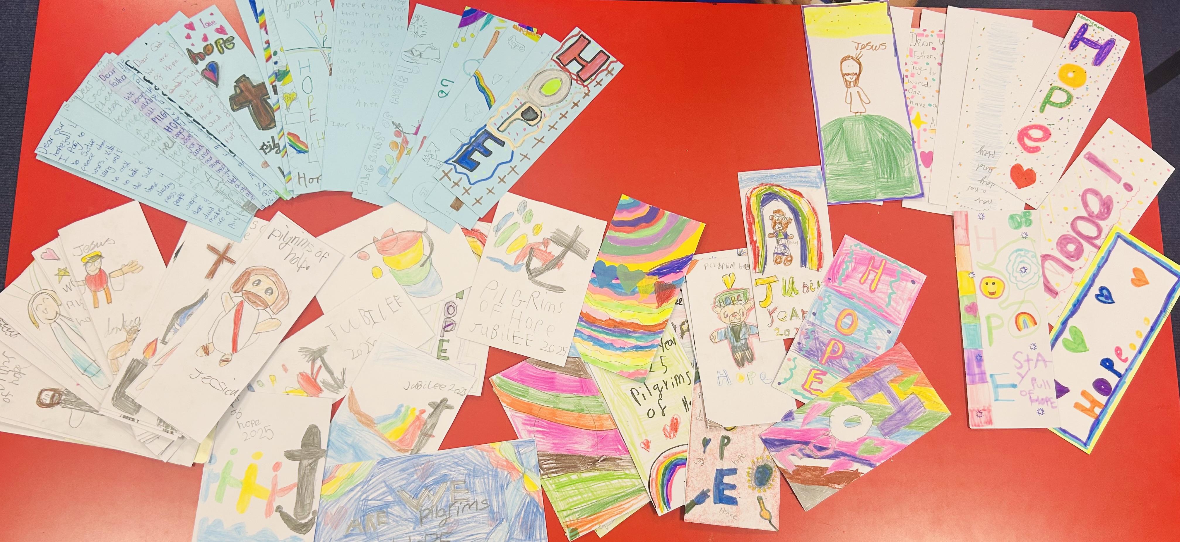 As part of the Year of Hope, all pupils in school made Jubilee prayer cards. These were taken to Church where Father O'Brien will distribute them to parishioners. All the prayer cards really got the message across of Hope and what this means for us as Catholics.