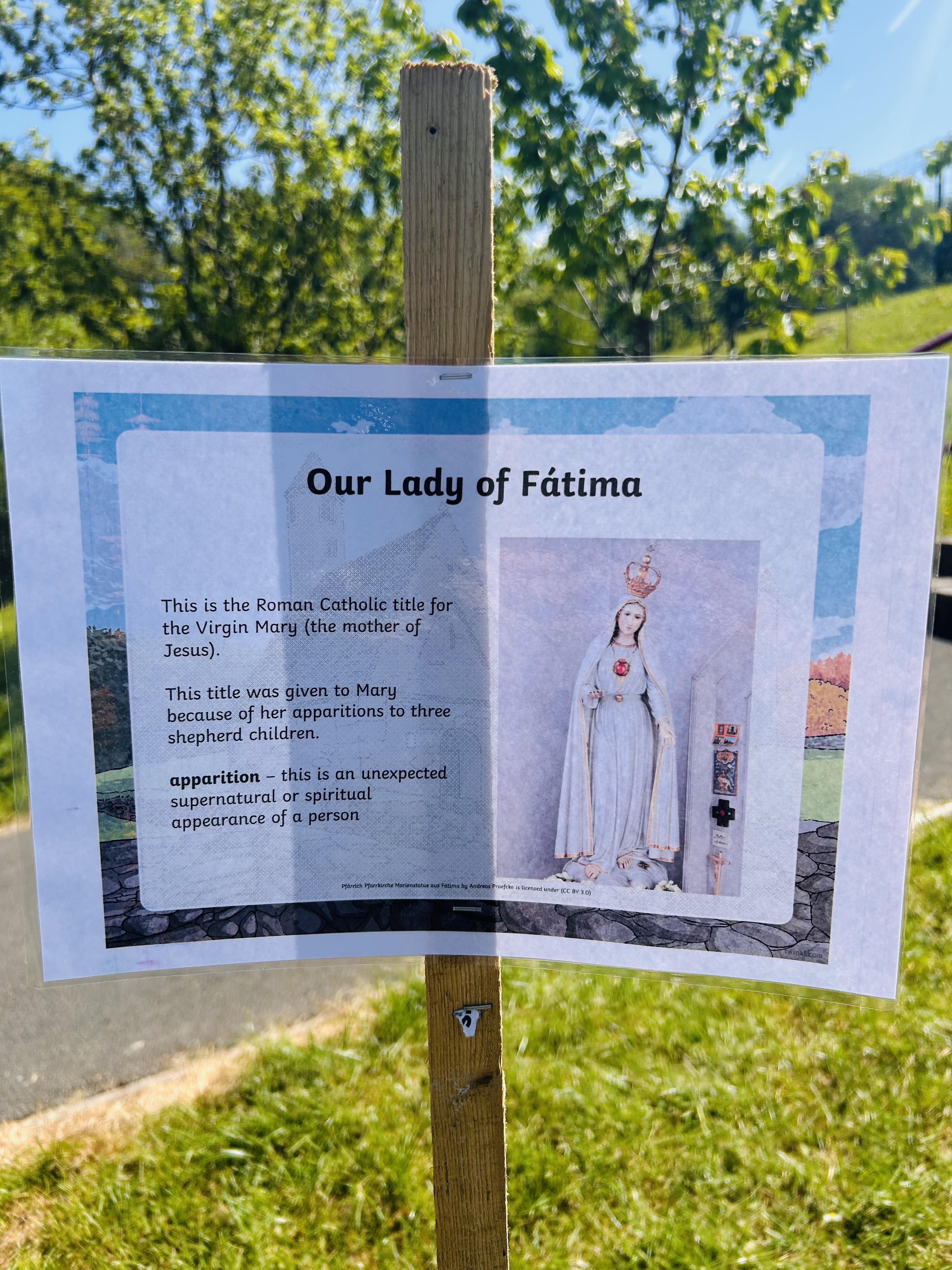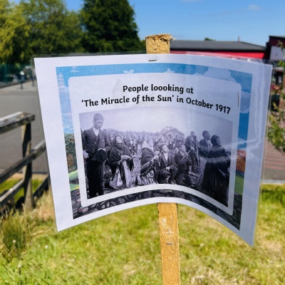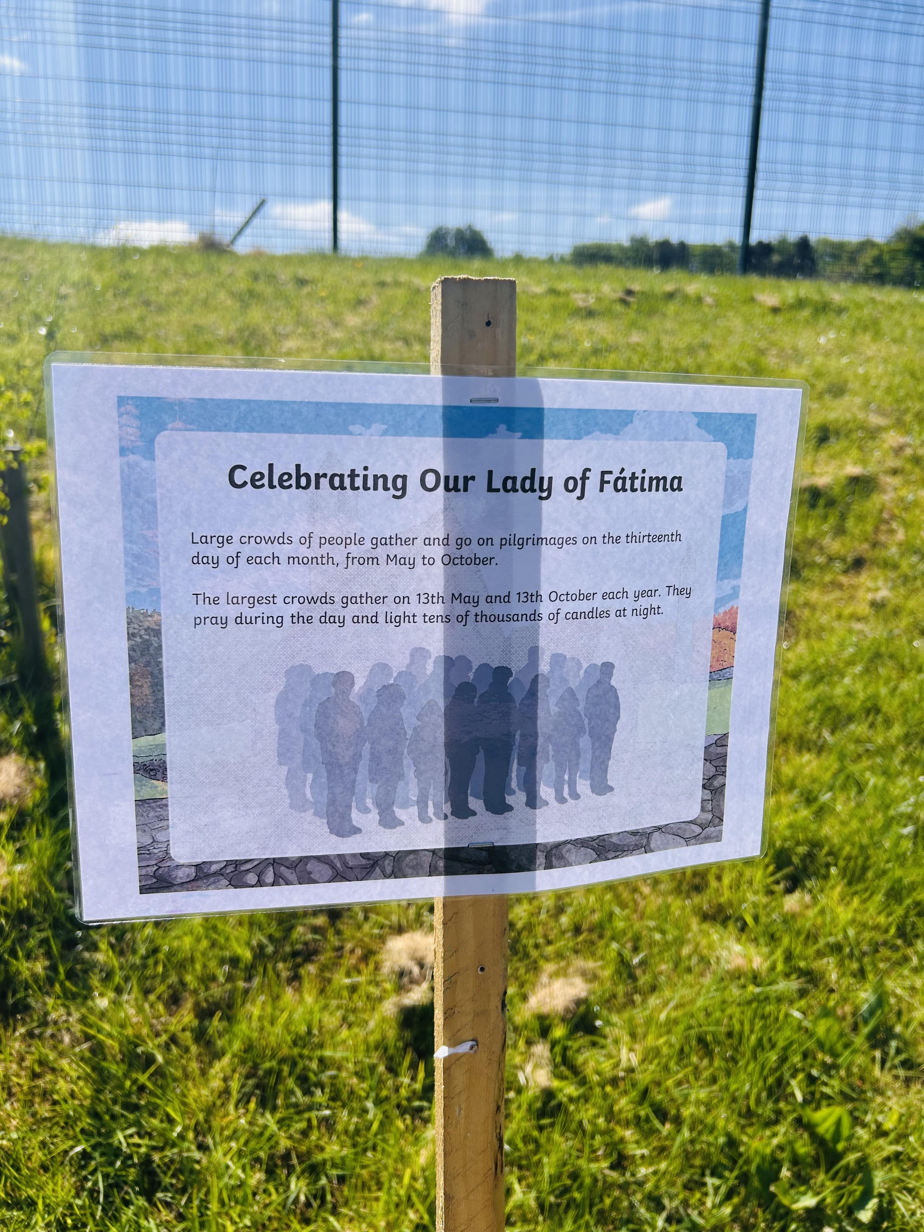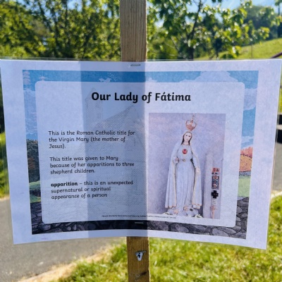 During May 20205, we held a pilgrimage in school for Our Lady of Fatima, who's feast day is 13th May. Pupils took time out of their day to explore the pilgrimage set up in the playground and on the sensory pathway. Pupils learnt about Our Lady of Fatima and what made her so very special. Father O'Brien also came into school and spoke to pupils about Our Lady of Fatima.