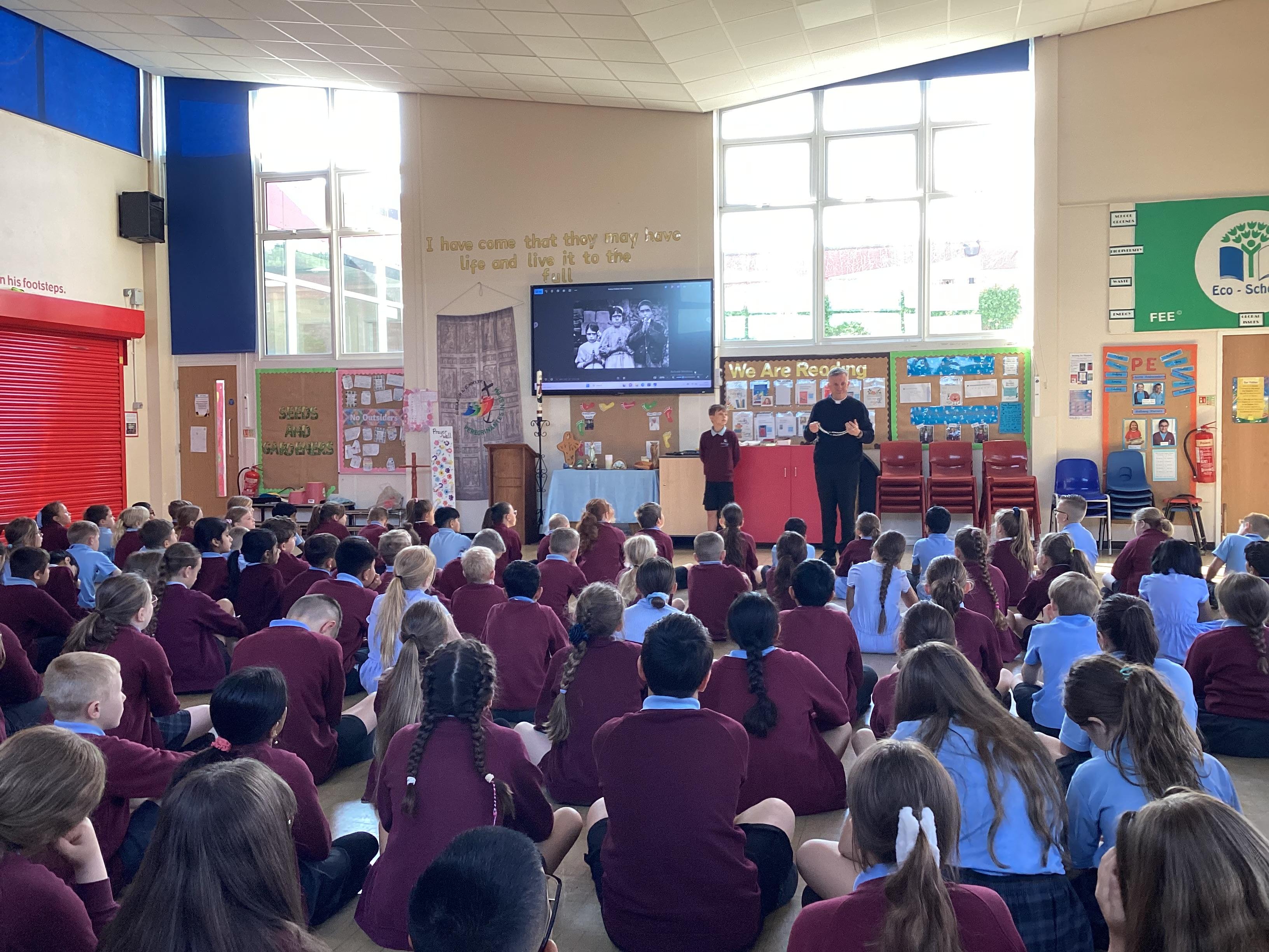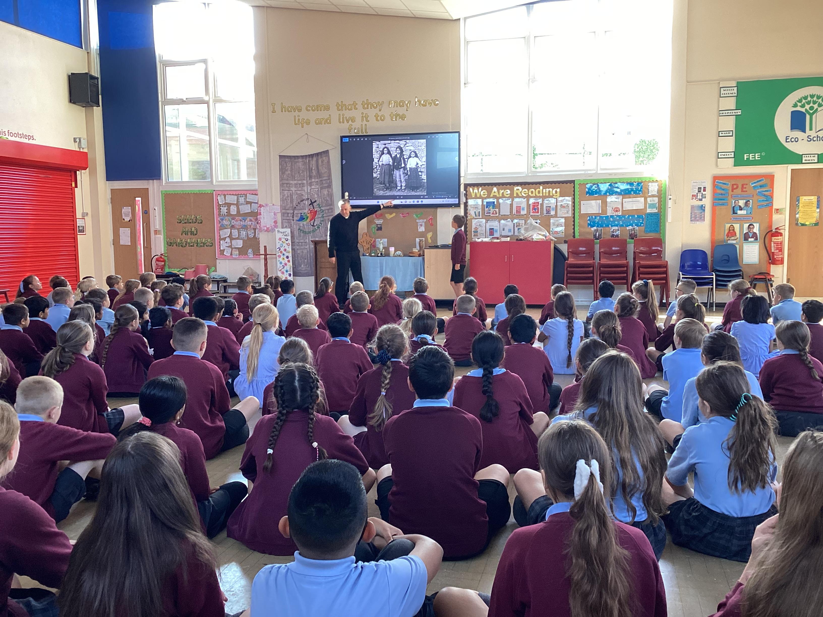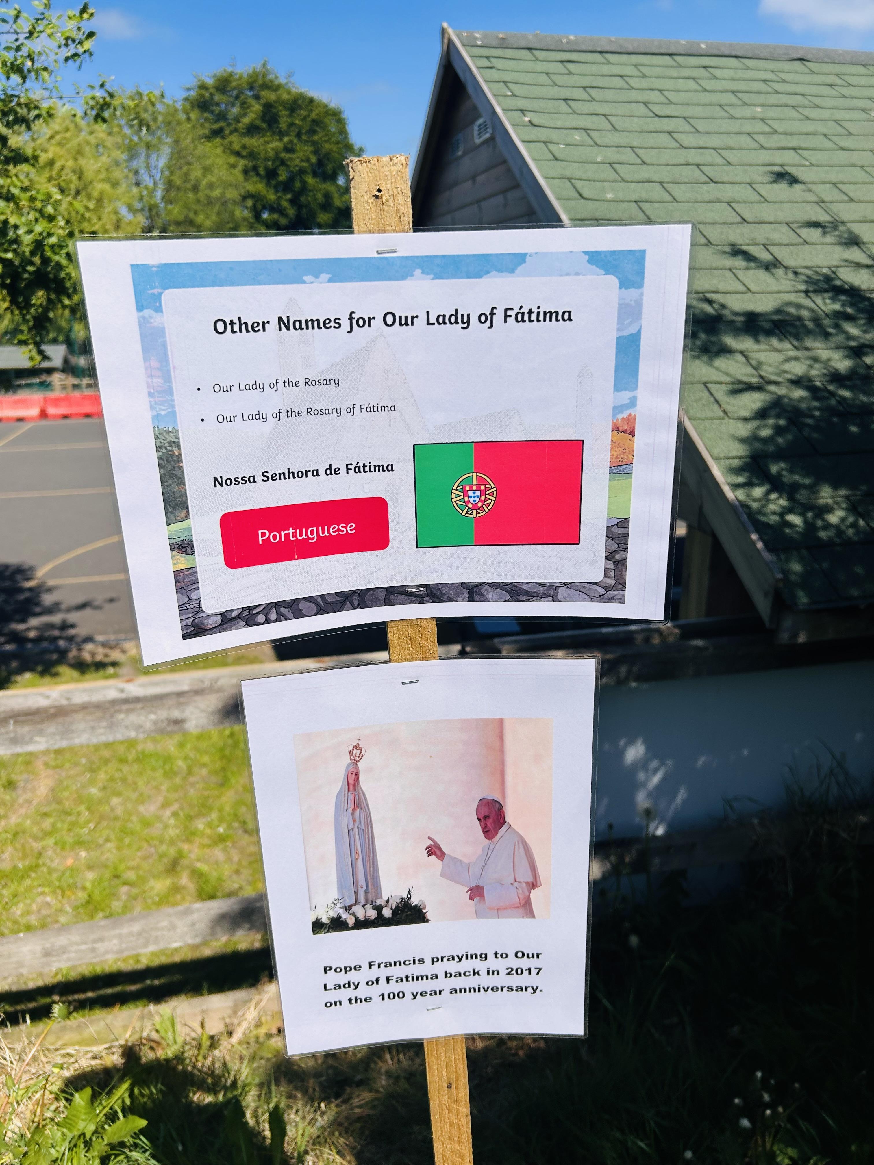During May 20205, we held a pilgrimage in school for Our Lady of Fatima, who's feast day is 13th May. Pupils took time out of their day to explore the pilgrimage set up in the playground and on the sensory pathway. Pupils learnt about Our Lady of Fatima and what made her so very special. Father O'Brien also came into school and spoke to pupils about Our Lady of Fatima.