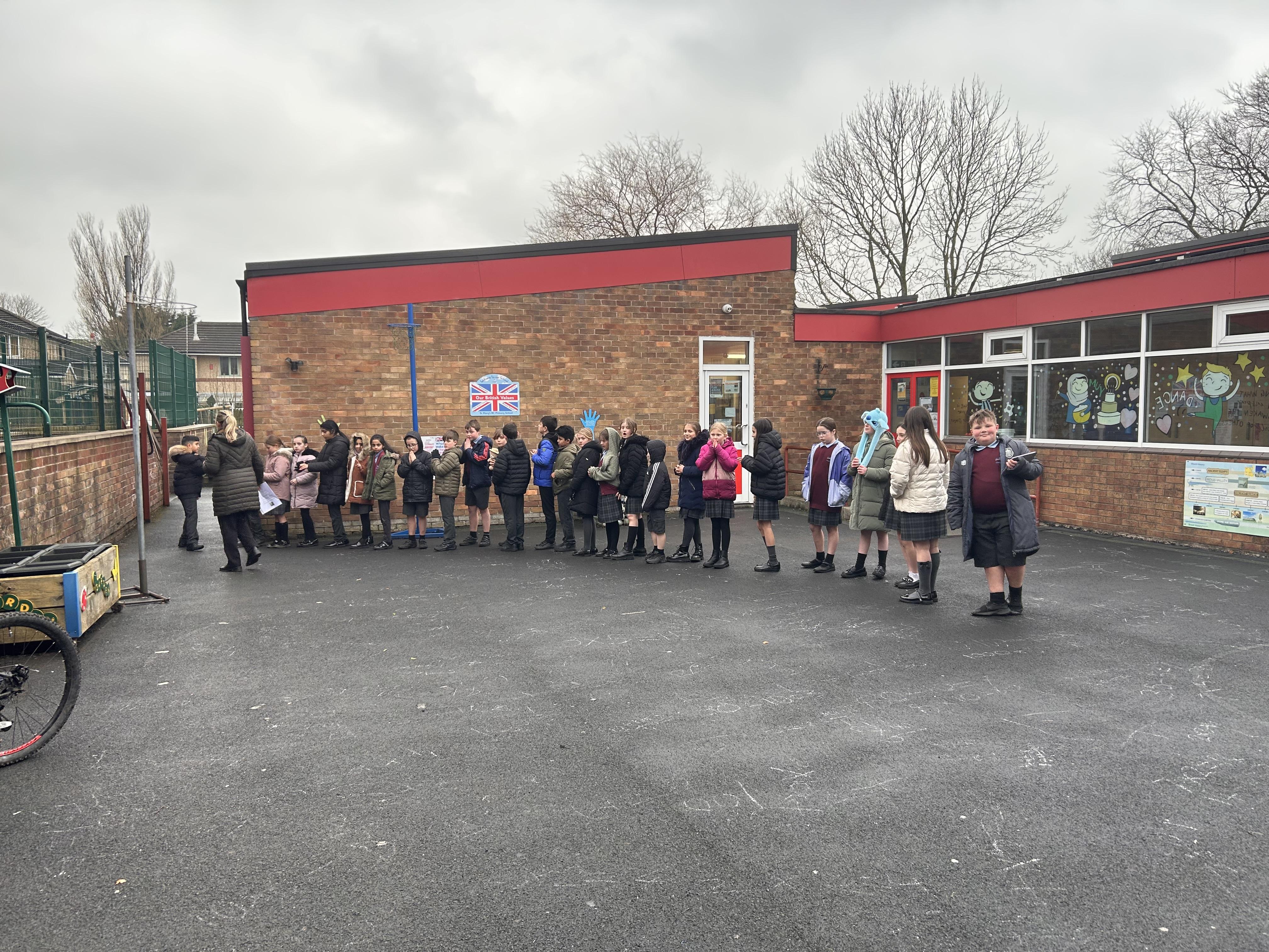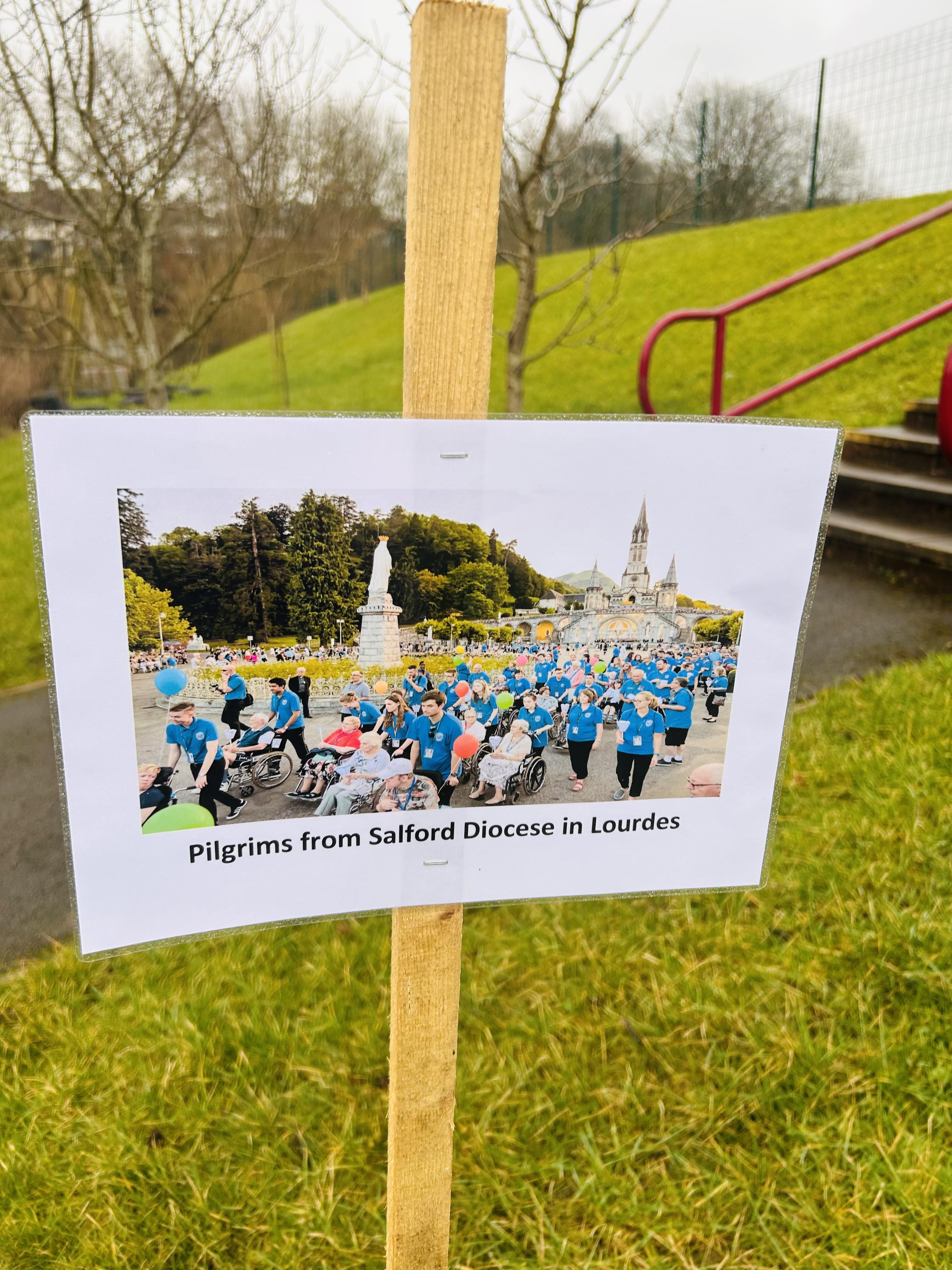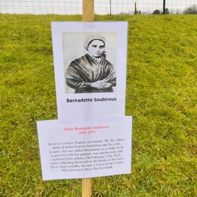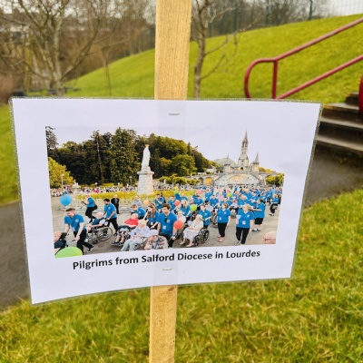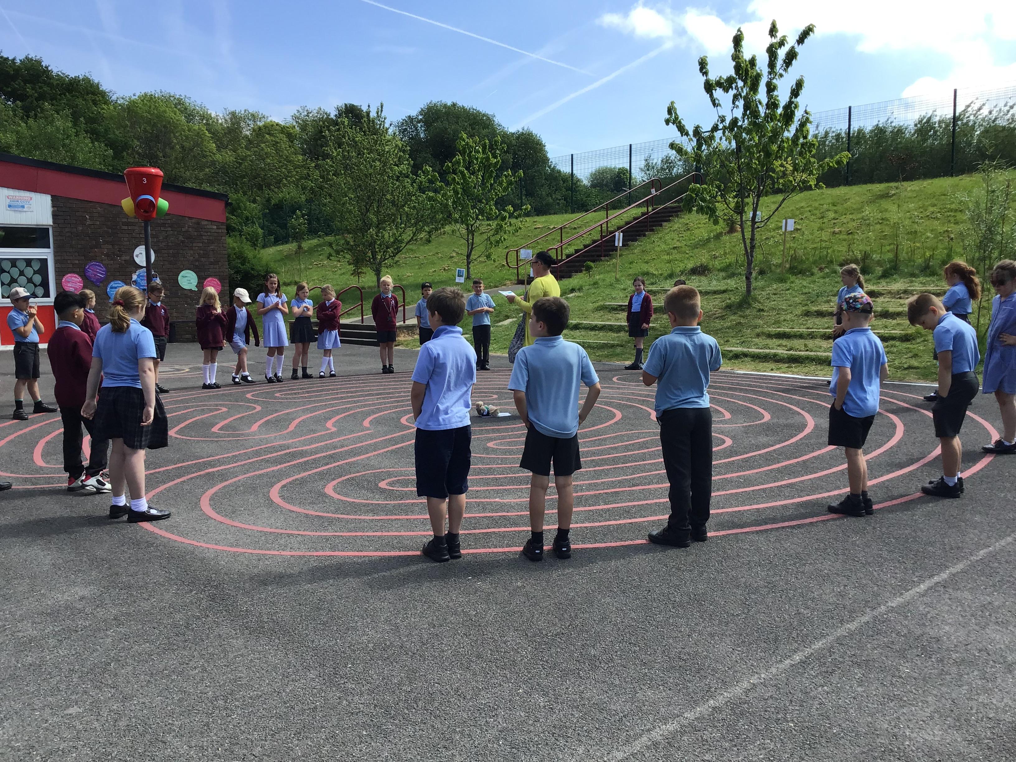 On Tuesday 11th February we held a mini pilgrimage around our school grounds to celebrate the feast of Our Lady of Lourdes. Pupils blessed themselves with Holy water then made their way to the labyrinth on the playground and walked the sensory path taking in the images and prayers along the way.
