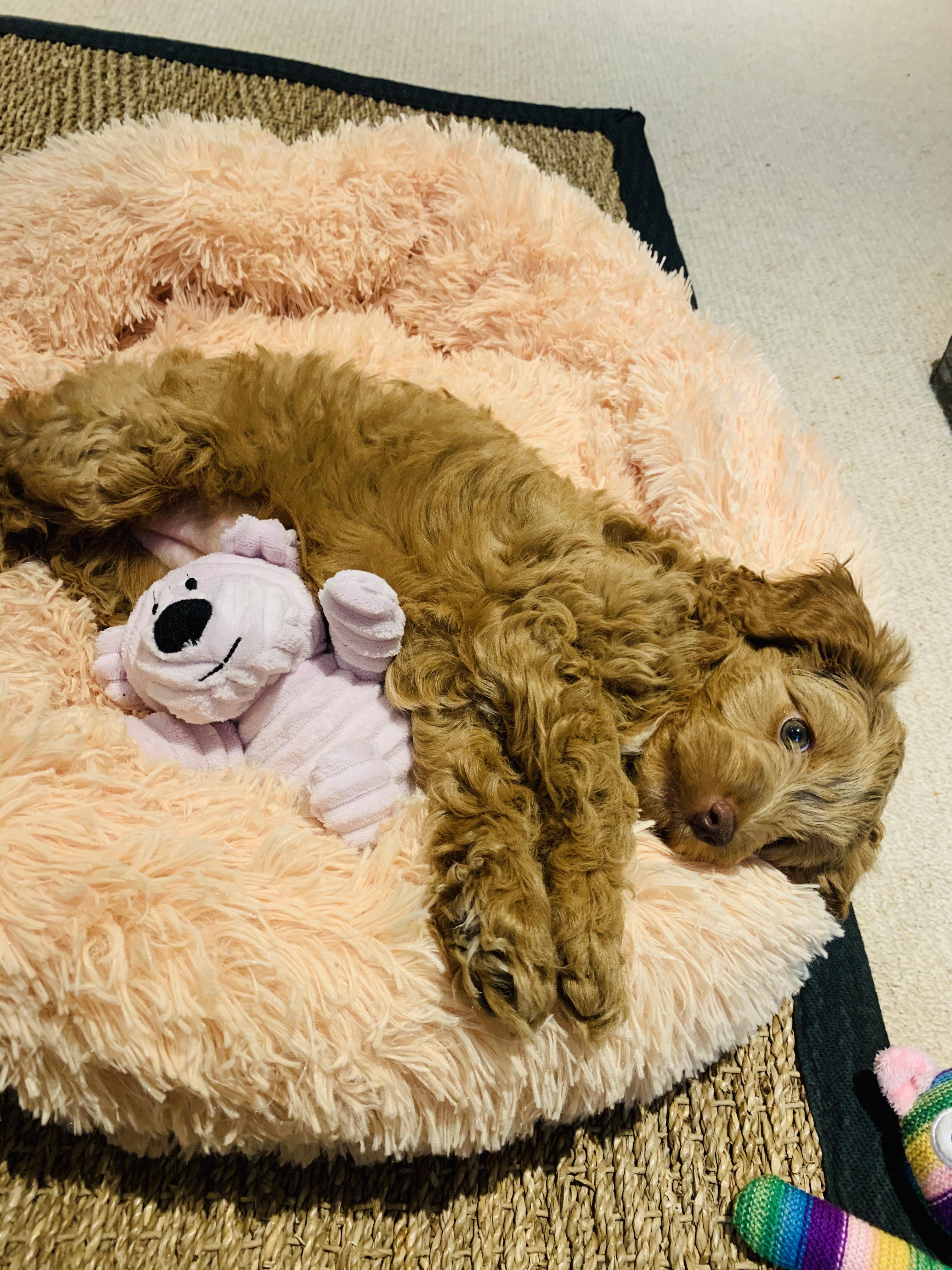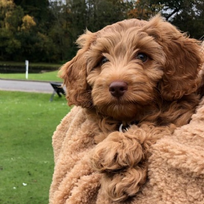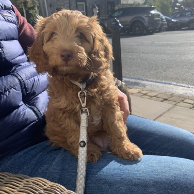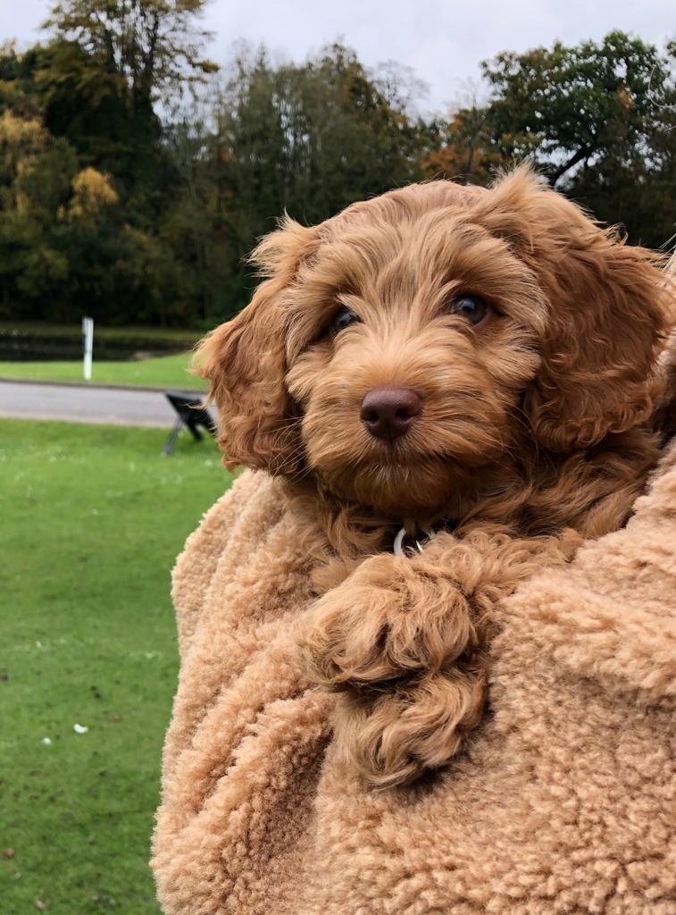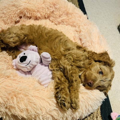Winnie is a cockapoo; this breed was chosen because of their temperament around children, intelligence and hypoallergenic fur.